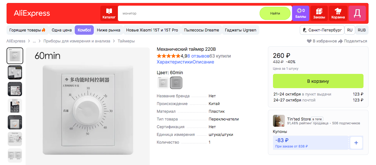 У меня механический попроще, просто звуковой сигнал без 220в. В Суре-2 тоже есть такая функция, хотя есть и 220в. И я с Али не дружу, не могу отдать деньги, а потом ждать придет-не придет. Не из-за жадности, просто морально не могу.