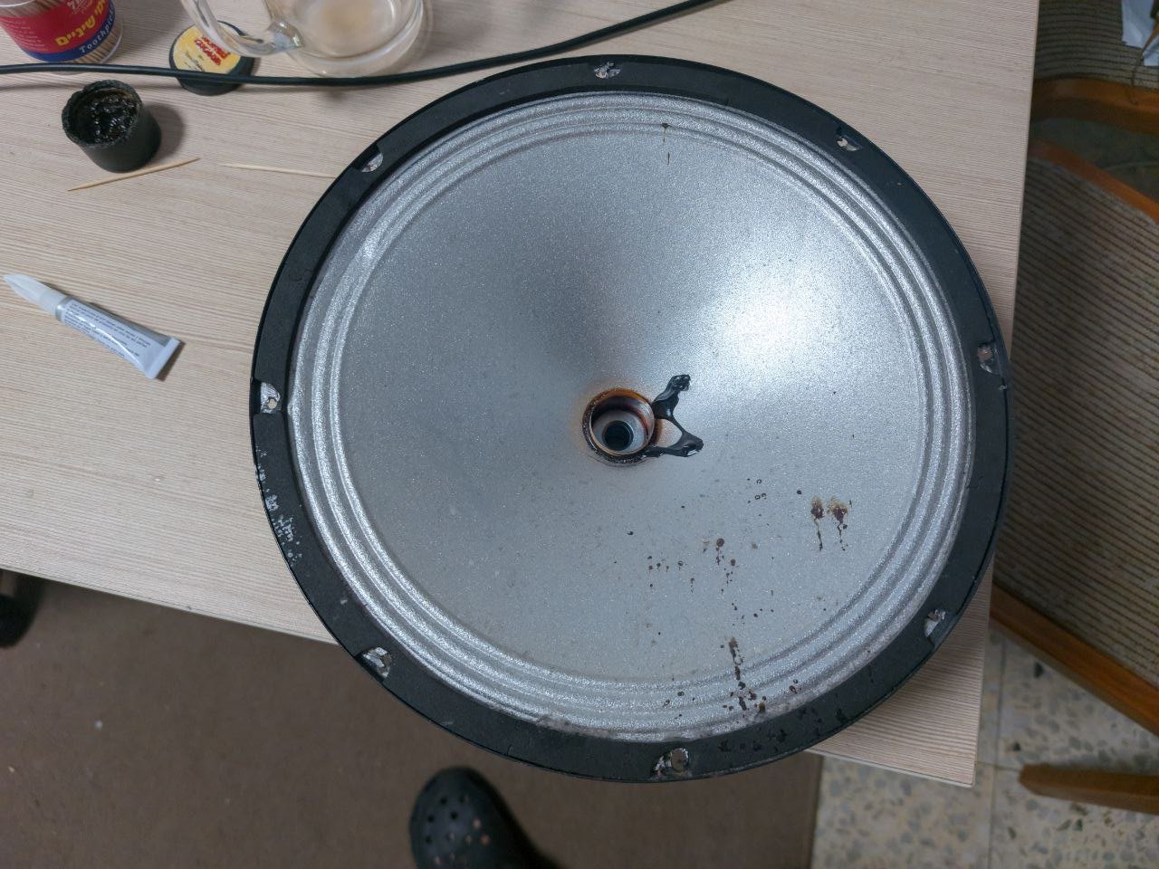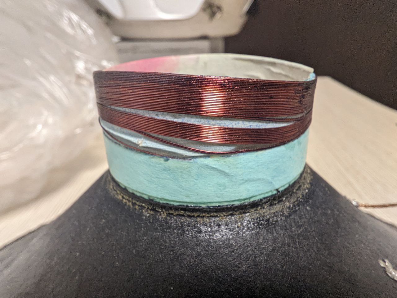К примеру, похожим способом восстанавливал целостность каркаса катушки, который оторвался в области своей шейки. Между катушкой и горлом диффузора. 12" ШП динамик "Оксфорд", (катушка 1") с музыкального аппарата.Порядок манипуляций не обязателен к жёсткому повтору.