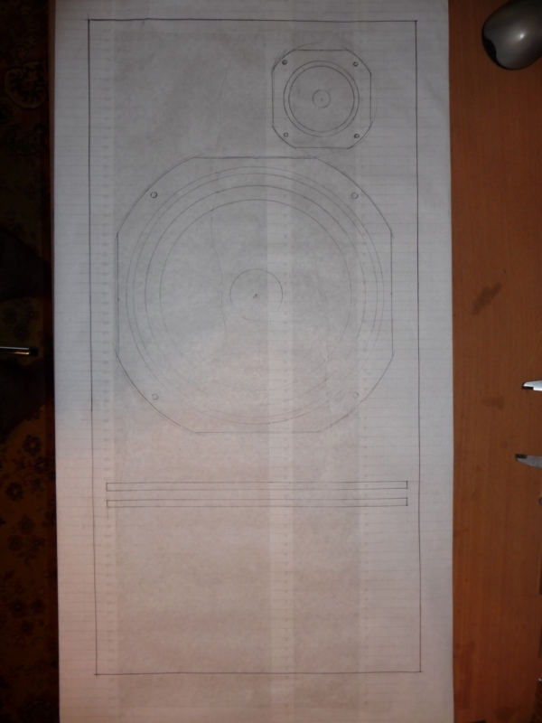 Небольшая ремарка. От щелевого ФИ решил отказаться, позвонил товарищу и успел вовремя. Причины таковы. У Шорова щели ФИ расположены в верхней и нижней частях корпуса. Одновременно являются элементами корпуса. Я же решил расположить их под динамиком и фактически парой. Через 10 мм друг над другом. Свои функции ( как в Шоровской конструкции) они не выполнят. Да и в ЗЯ объёмом в 42 литра (Соньковские корпуса) эти НЧ отыграли достаточно хорошо. Потому и отказ.