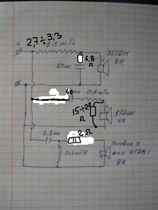 В емкостную ветку НЧ фильтра, в 90 мкф , врезаем резистор Ом на 6-8. Получаем первый порядок с Цобелем, свободный живой незадавленный бас . Дальше по схеме, которую ещё отыскать.