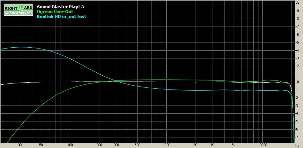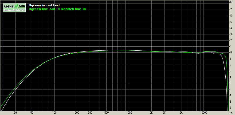 Сначала замкнул линейный выход Ugreen на его же вход, а потом выход Ugreen на вход встроенного Realtek'а.