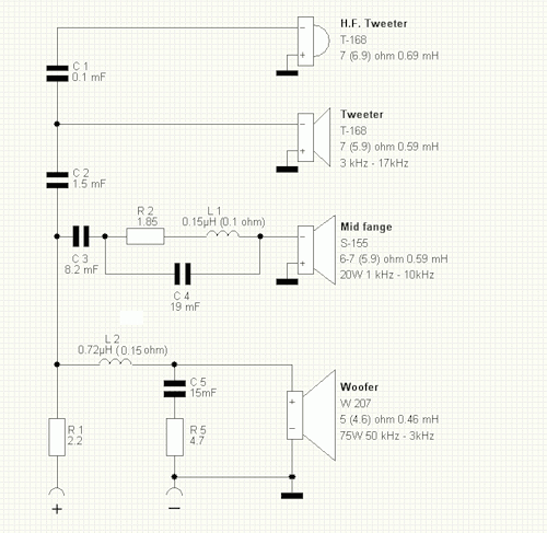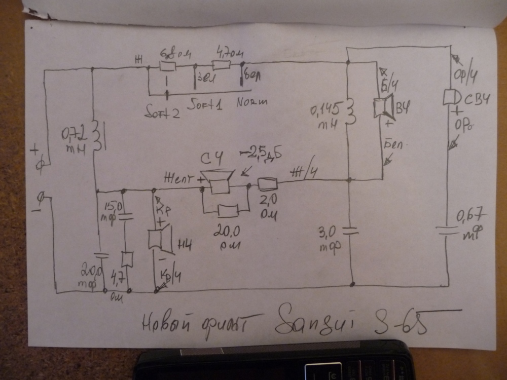 СЧ динамик бумажный, конусный. Подвес бумажный. Корзина имеет два окна наглухо заклеенных толстым войлоком. Звукоизолирующего бокса СЧ динамик не имеет. Крепёж декоративного кольца и самого динамика на саморезах