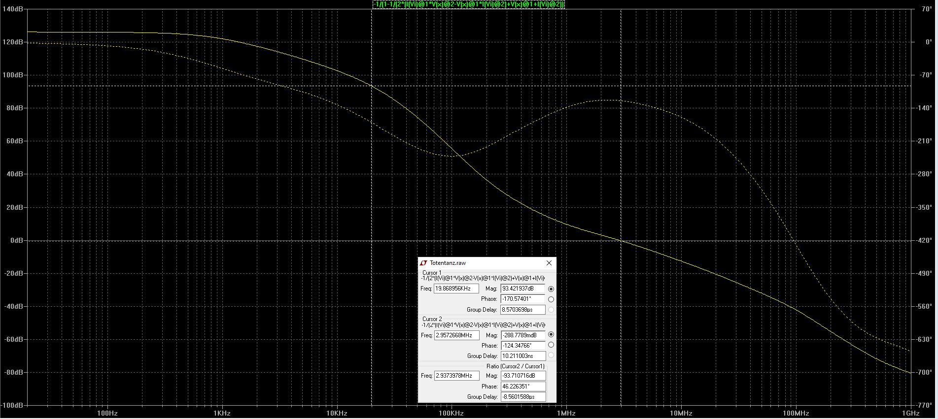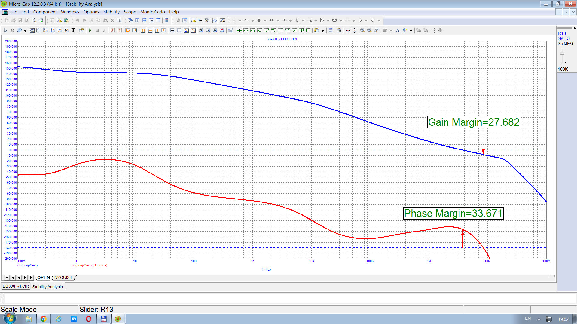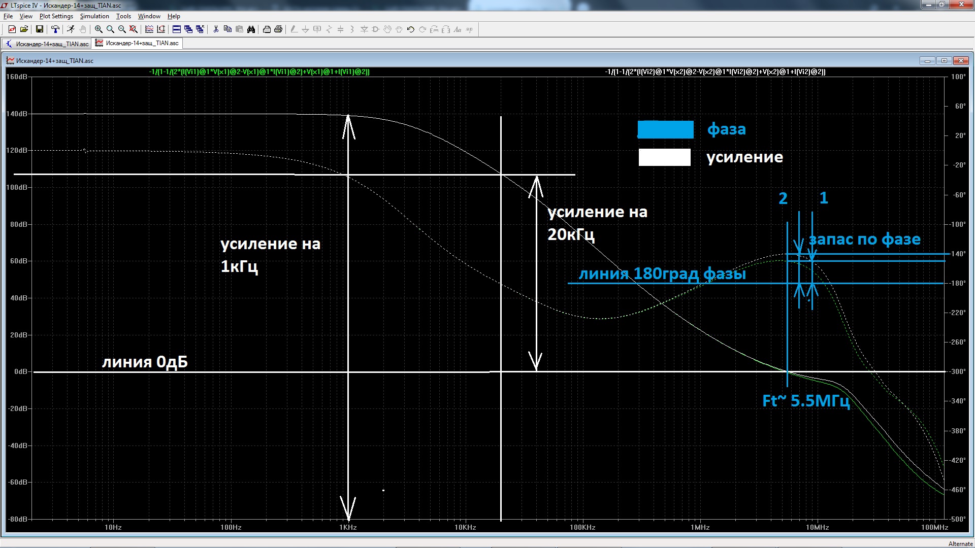 Почему вы запас устойчивости по усилению измеряете на частоте 14kHz, а не на 20MHz?