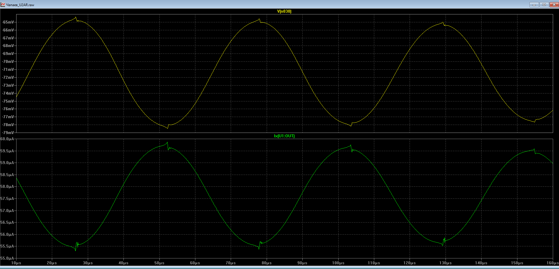 А это- напряжение и ток на выходе ОУ: