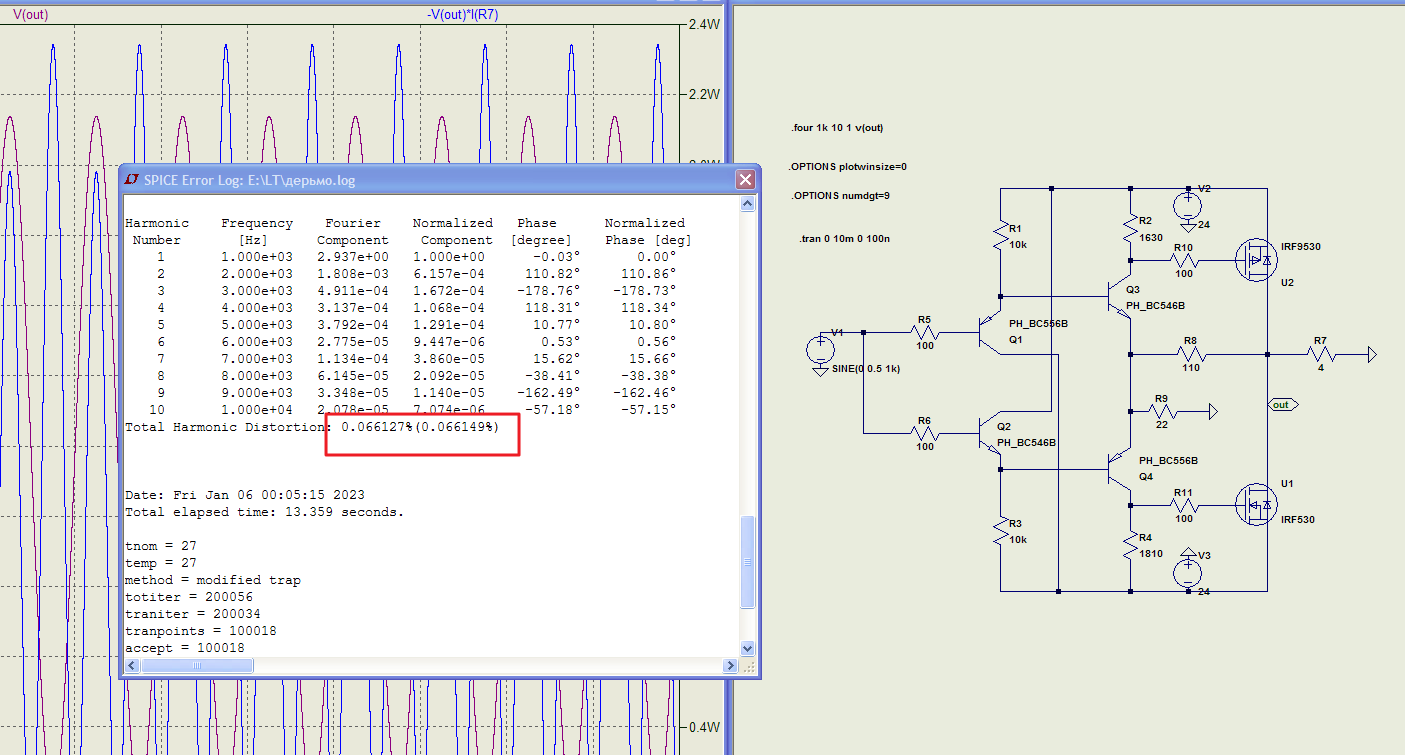 1. Не видно и не слышно УМ с выходным каскадом класса ЭА, он же АВ без отсечки тока в холостом плече. Длина тракта не увеличивается, все показатели улучшаются. Сложность не окупается прибавкой какчества? Но спектр обязан почиститься именно от гармоник высших порядков. Что не так?