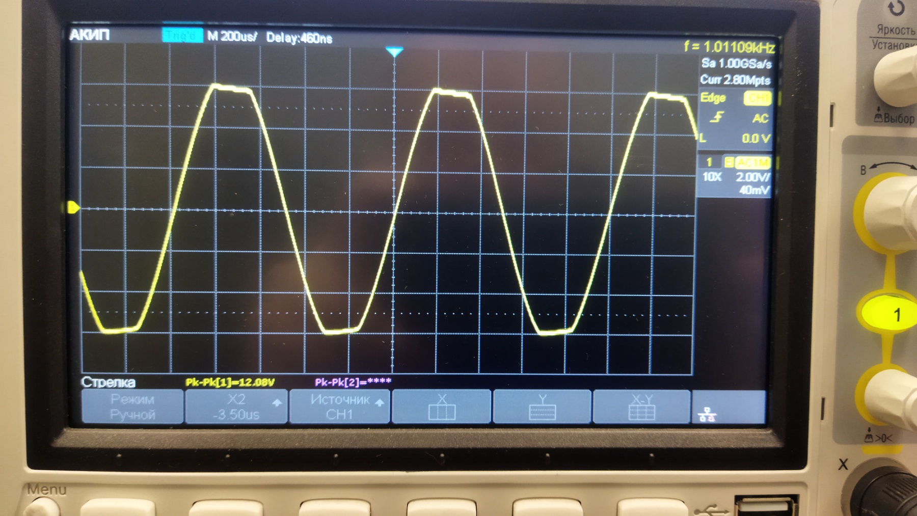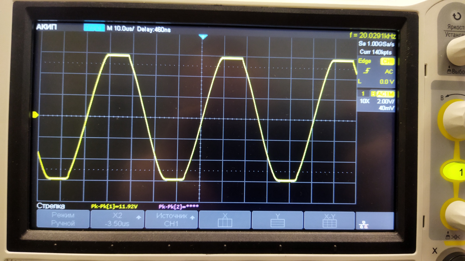 В качестве примера посмотрим работу усилителя Батя (гитарного усилителя как здесь его назвали) на частоте 1 МГц. Как видим он четко реагирует на сигнал такой частоты и выдает его на выходе с тем же коэффициентом усиления что и сигналы звуковой частоты. Такой усилитель без труда передаст и мелкие детали микродинамики.