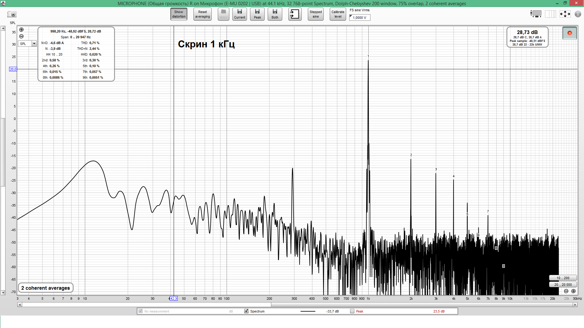 возбуждаемых гармоник бесконечно велико, но, во-первых, амплитуды их быстро убывают, во-вторых, только ограниченное число гармоник попадает в слышимый диапазон частот до 16…20 кГц, в третьих, особенности обработки звука на базилярной мембране показывают, что реальное значение для восприятия тембра играют только первые 15…17 гармоник."