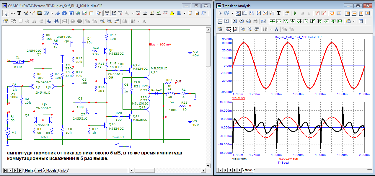 Хочется вам выделять кроссоверные искажения - выделяйте, у вас там их как раз пруд пруди. С такими номиналами и заскоком предвыхода в отсечку особенно. Что тут обсуждать?