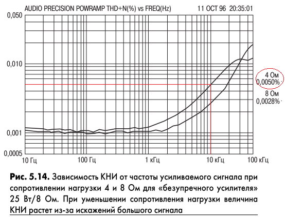 с этим трудно спорить. Но сам автор "безупречного" усилителя приводит следующие параметры на нагрузке 4 Ома