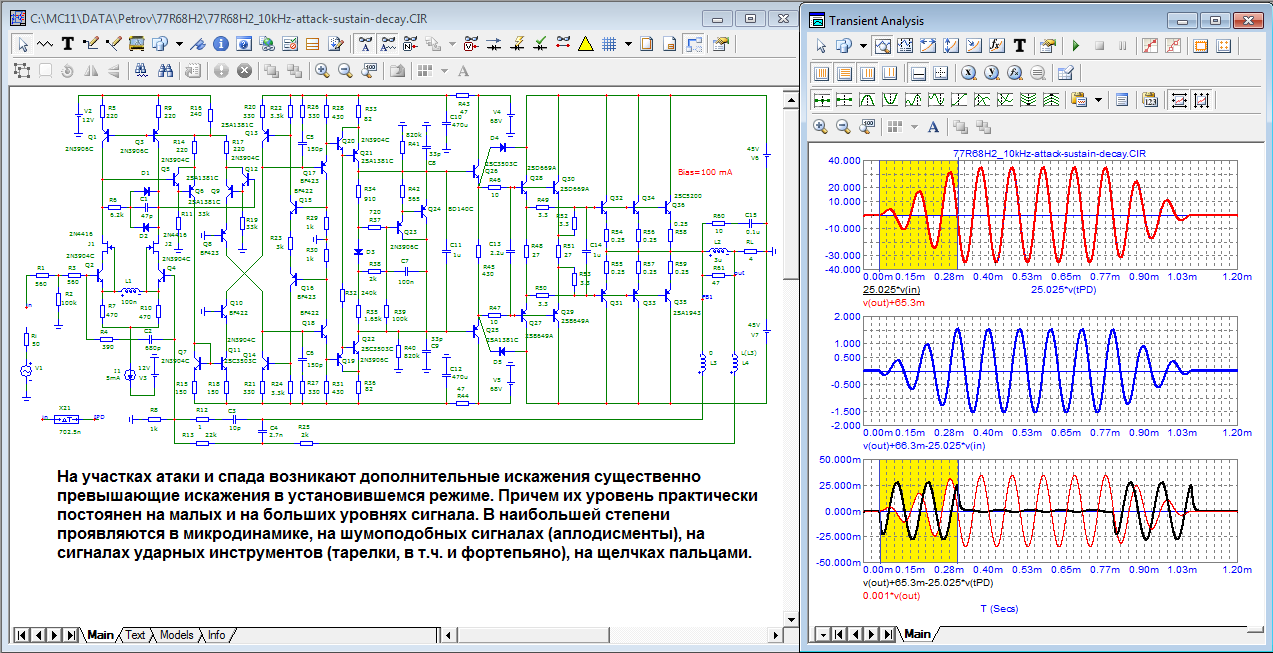 Так как в месте переходов меж синусоидами разной амплитуды образуется излом с гармониками, Петров его нам и показывает, как результат искажений сигнала усилителем:
