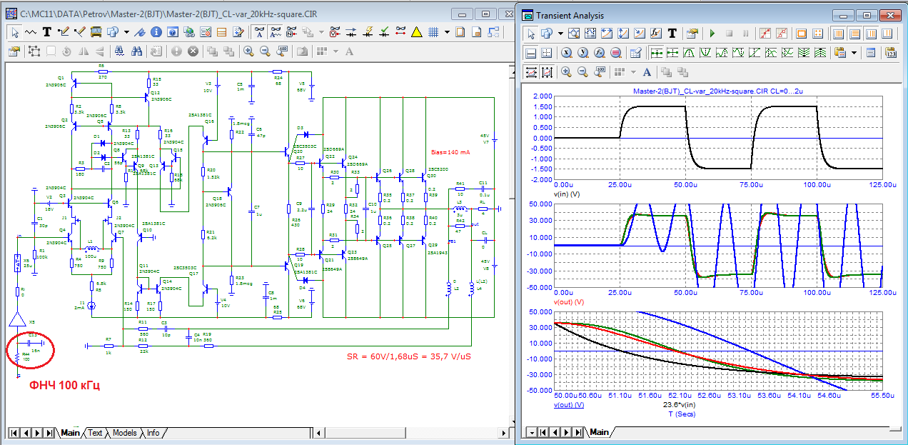 Красными стрелками показаны места изломов с ВЧ-гармониками, синими стрелками - характерный отклик на них. Явные СИД-искажения, как сказали бы хафлер, мейнард и Петров.