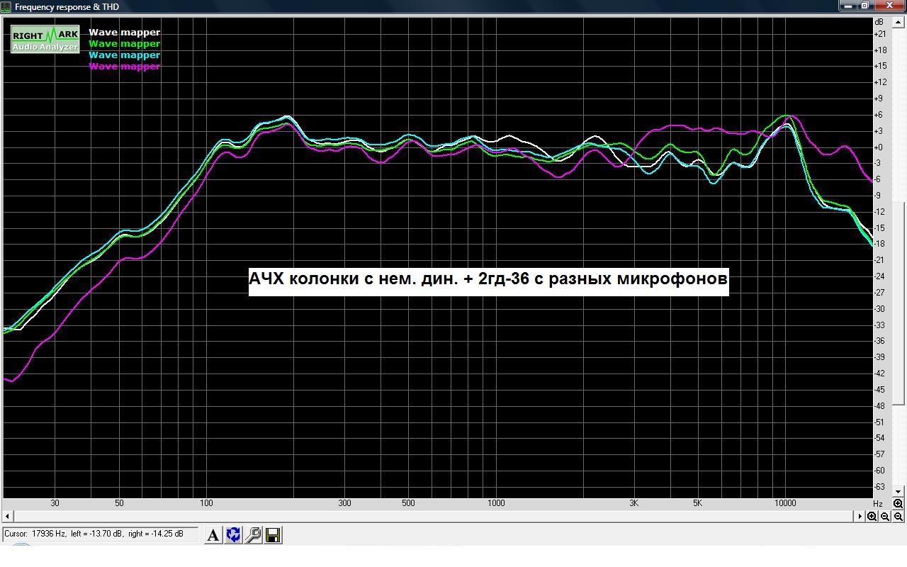 В прикрепленных файлах результаты измерения АЧХ всех динамиков по отдельности, а также НЧ динамика в корпусе АС без других динамиков, а также с различными ВЧ динамиками.