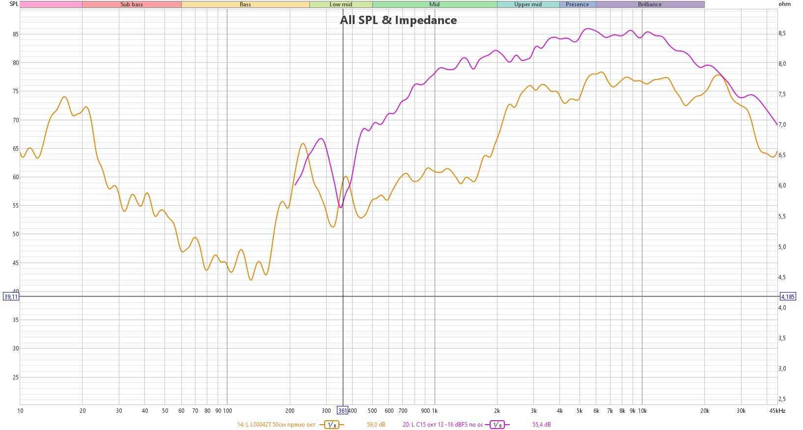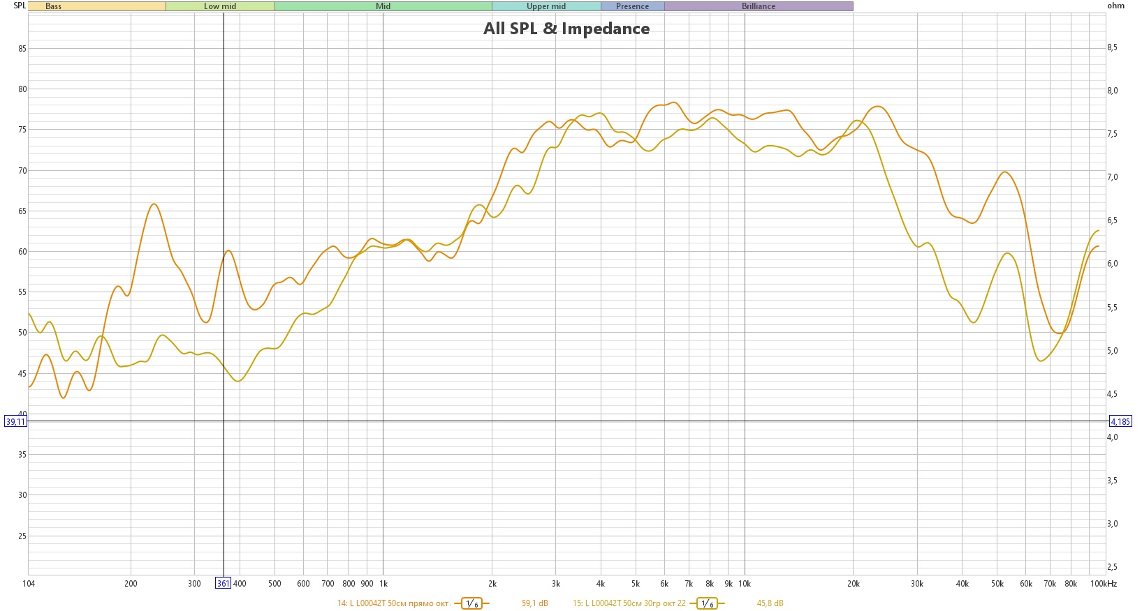 Благодаря маленькому куполу динамик достаточно уверенно лезет в область ультразвука:
