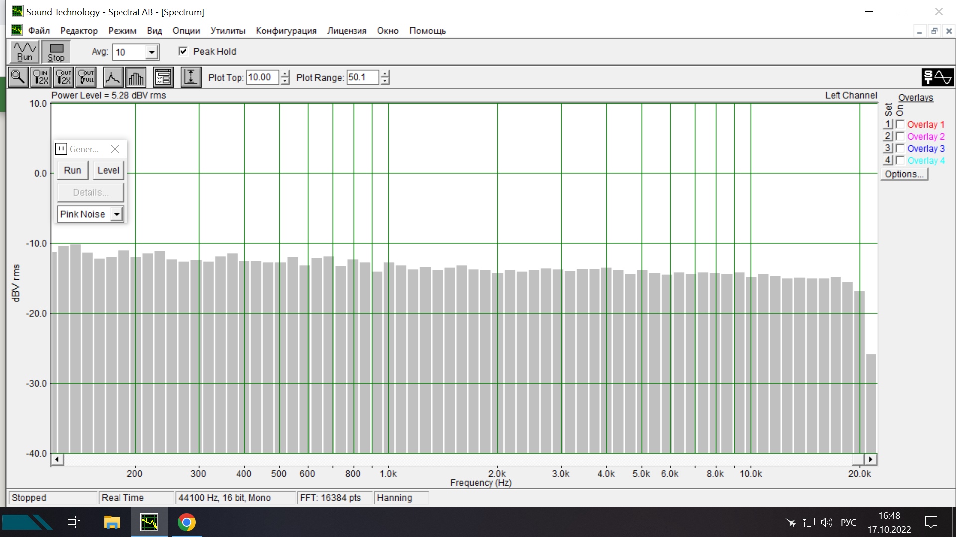 Изучаю возможности SpectraLab, начал с простого, измерение Звуковой карты (сама себя)