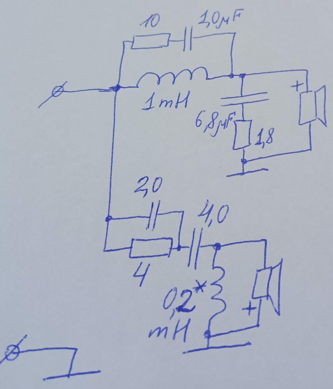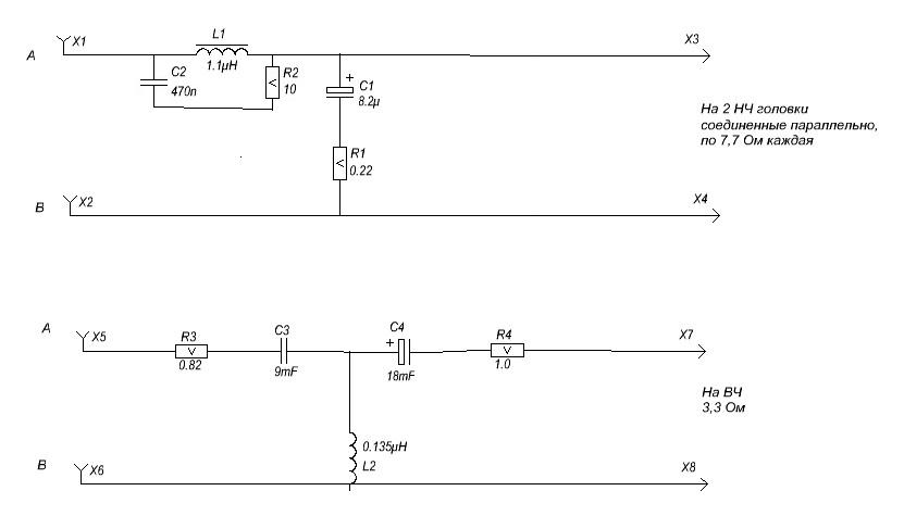 ВЧ подключил через 4 мкф и 2 Ом. Удалил нахрен цепь параллельно катушке мидбаса