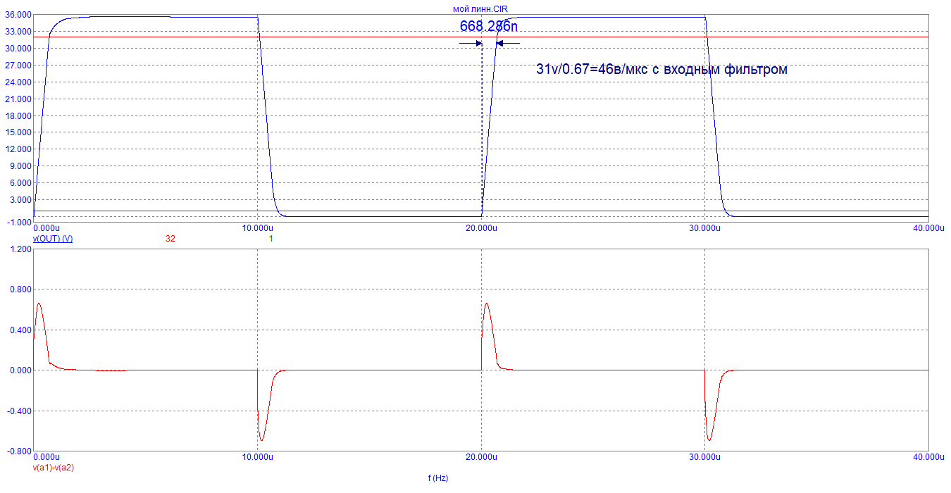 Вариант перерождения шушуринского усилителя в приличный аппарат. 50в/мкс. При спаде по краям -3дб полоса полной мощности 200кгц.