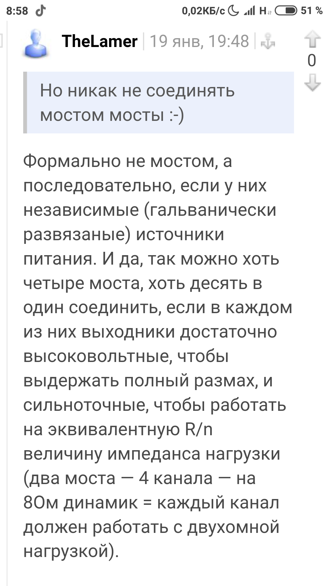 Но там у него на 1 канал была 6 ом нагрузка, а на другой 4 или 8