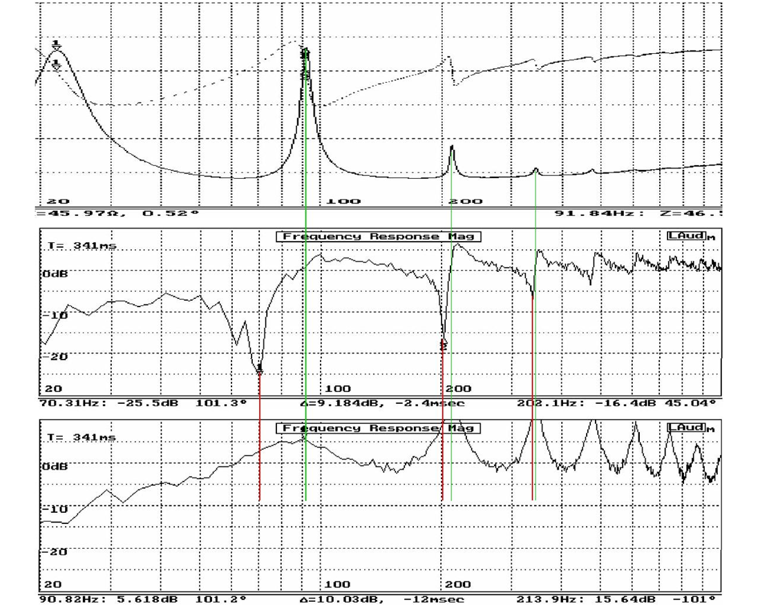 «Акустическое оформление типа «Т-линия» приводит к появлению серии резонансов в спектре полного сопротивления головки и ее звукового давления»