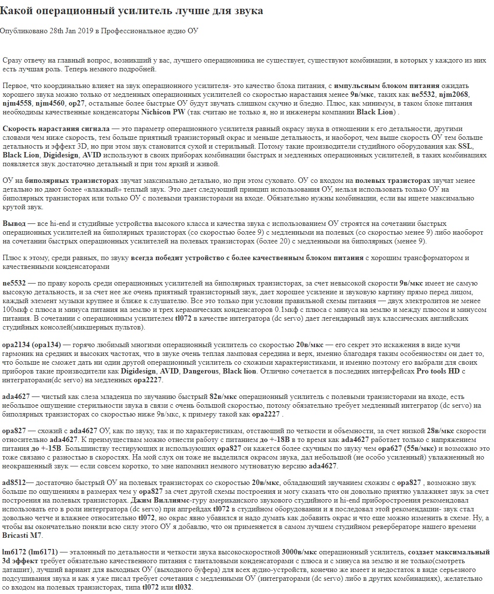 Существуют медленные и быстрые ОУ ...в зависимости от прослушивания различной музыки (рок или джаз(классика)),на такой музыке будет лучше определённый ОУ.