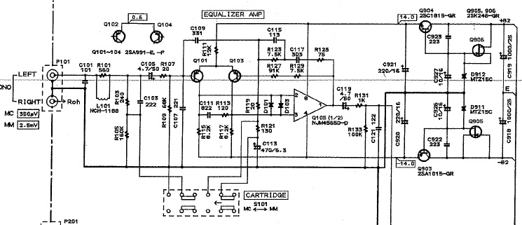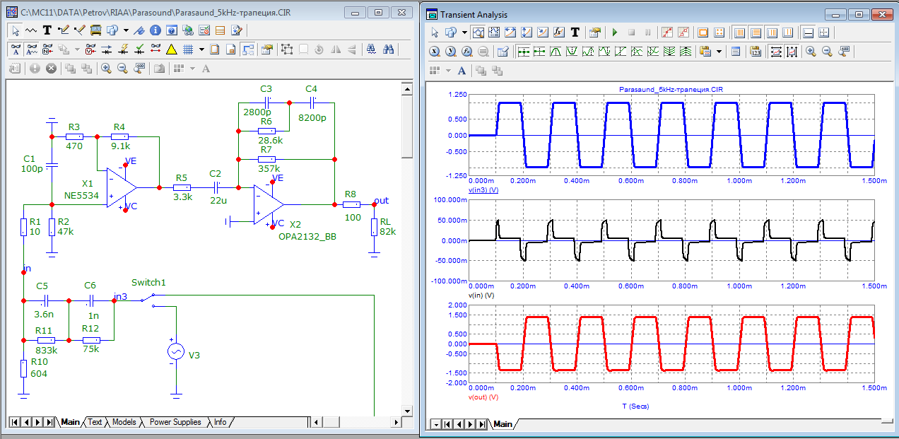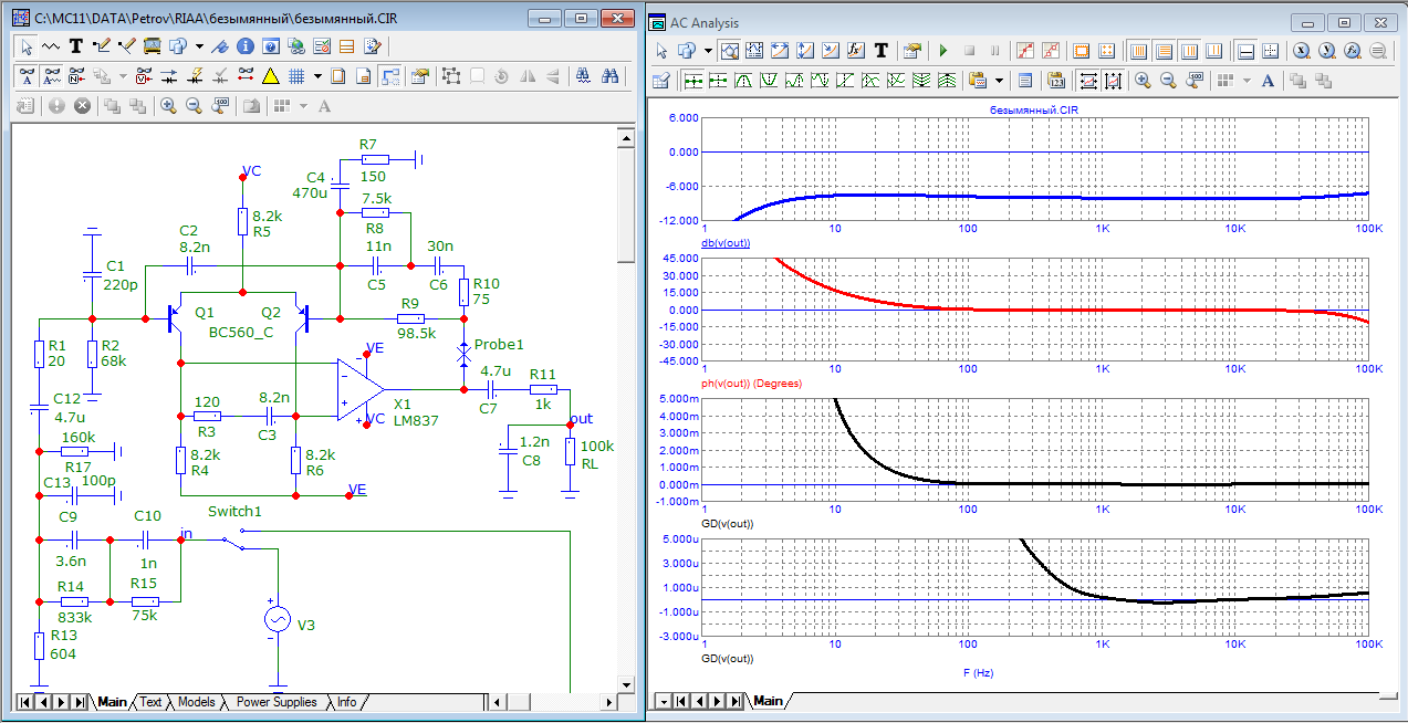 Лишние для расчёта искажений цепиь анти-РИАА-коррекции сняты и выброшены.
