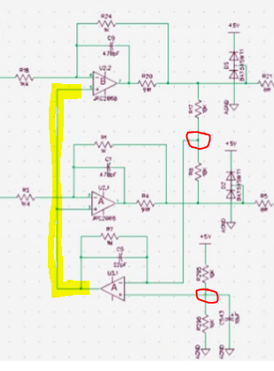 Я полагаю, что речь о диодах на выходах ОУ к верхнему и нижнему питанию. А то тут и про супрессоры уже говорили - главное чтобы верно понимали о чем именно речь и не получался испорченный телефон.