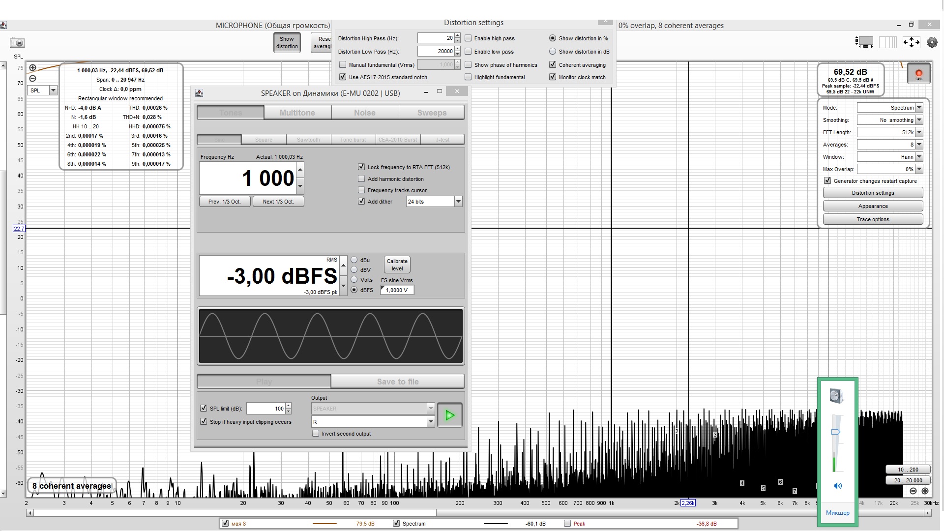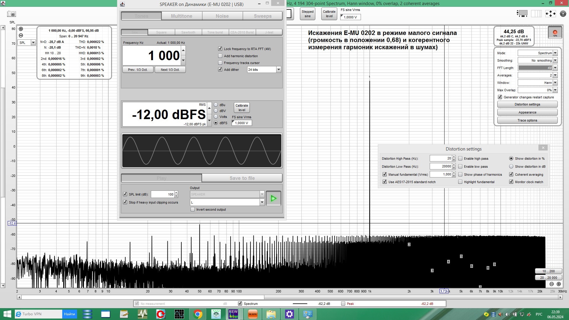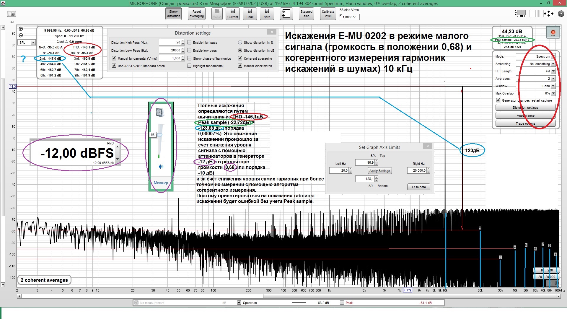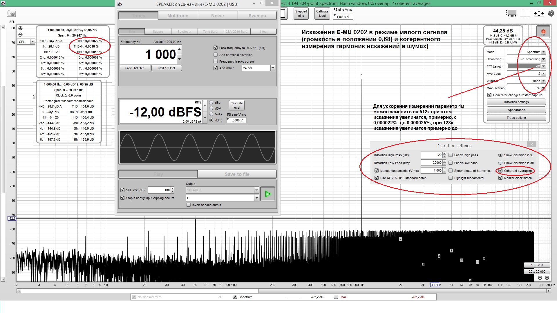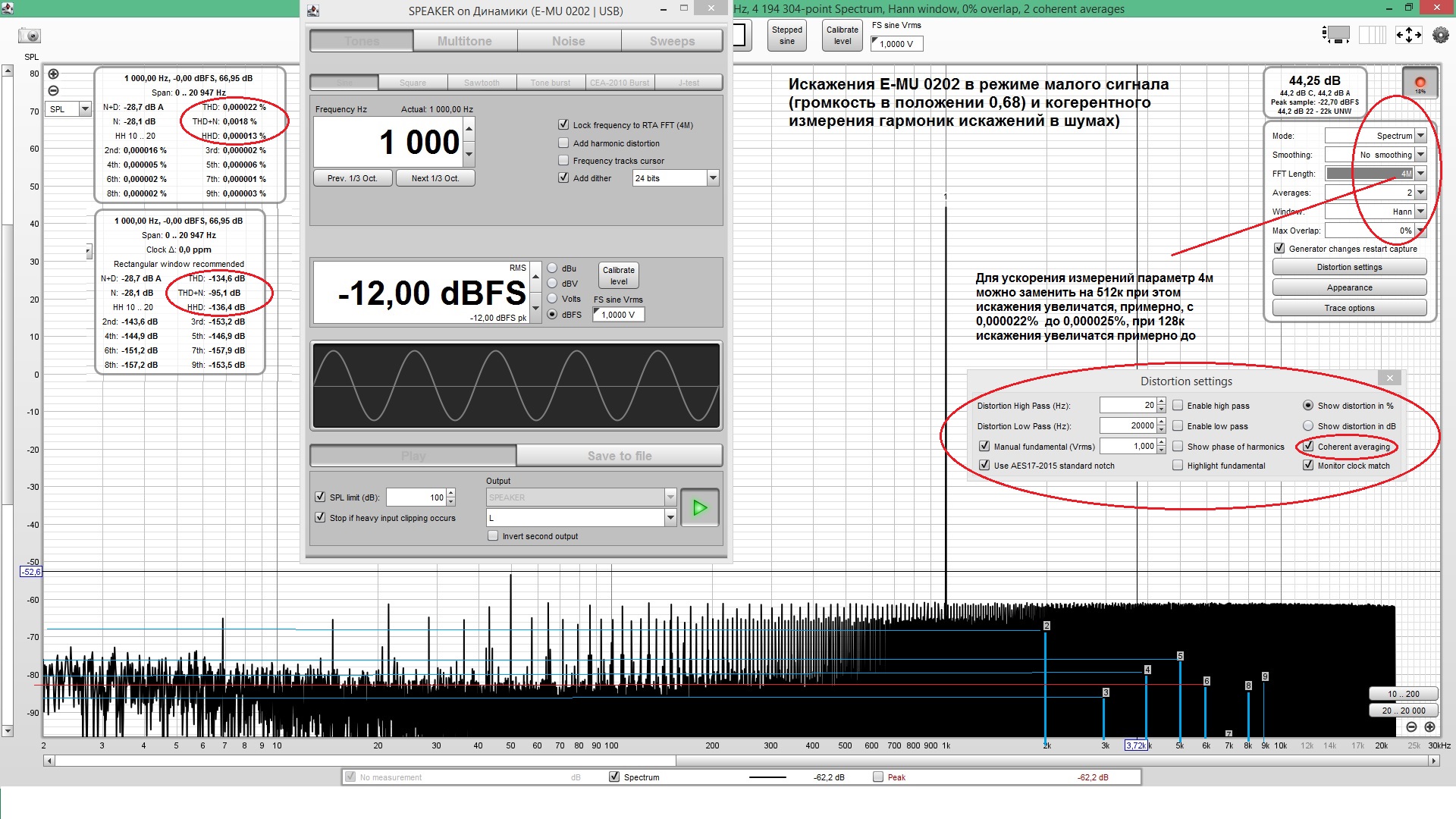 Искажения E-MU 0202 в режиме малого сигнала (громкость в положении 0,68) и когерентного измере...jpg