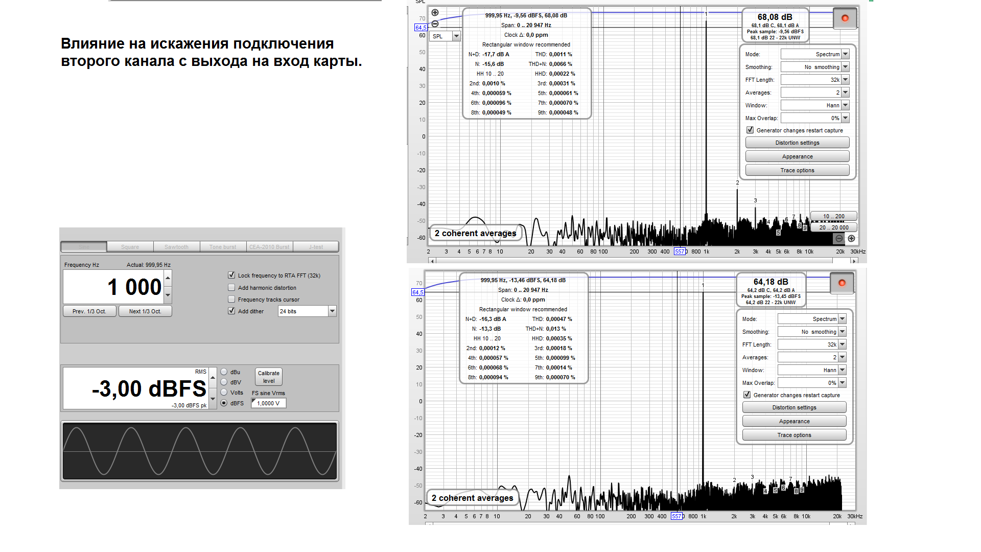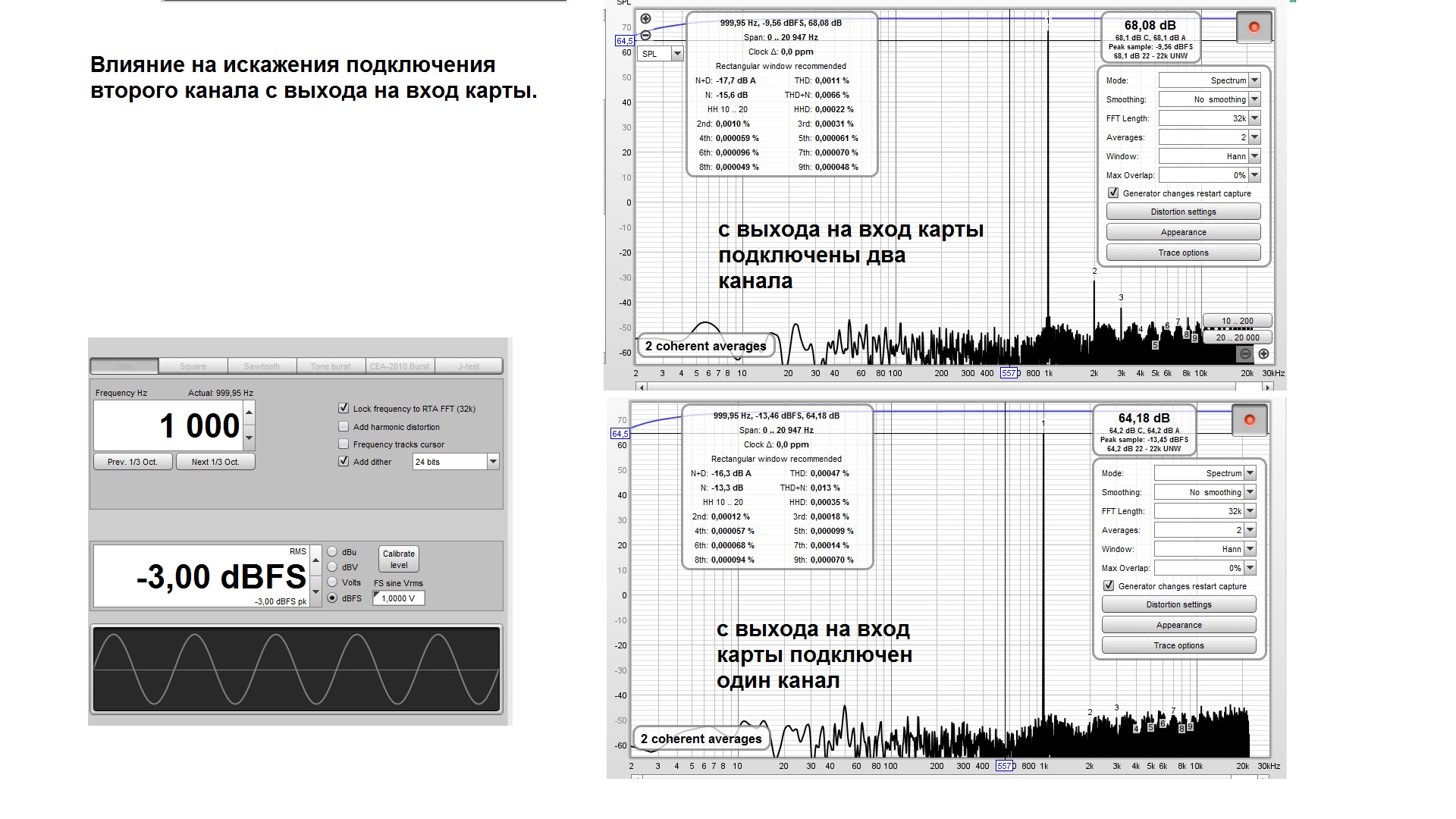 • Влияние на искажения подключения второго канала с выхода на вход карты..png