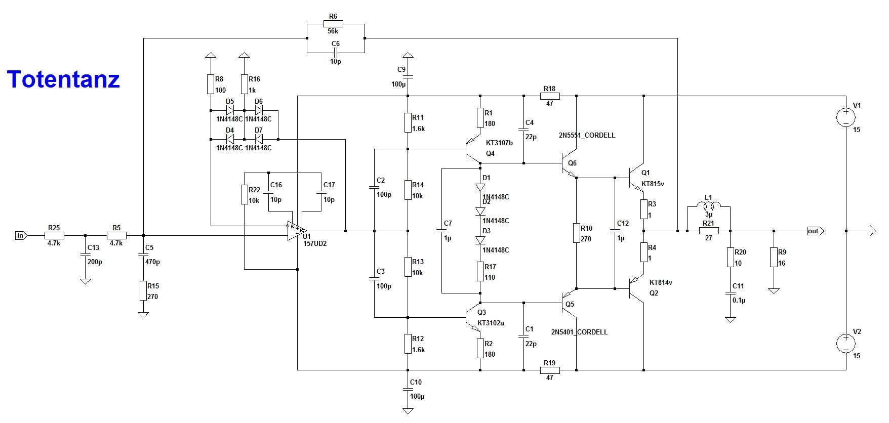 157уд2 звуковой оу? при двухполюсной коррекции у него 75дб на 20кгц. примерно похоже - ne5534, тоже звуковее просто некуда. и даже таких цифр- недостаточно для высококачественного ум. Я придумал и использовал самый простой транзисторный бустер со встречной нагрузкой, +20дб добавилось , вышло 95 примерно дб на 20кгц.