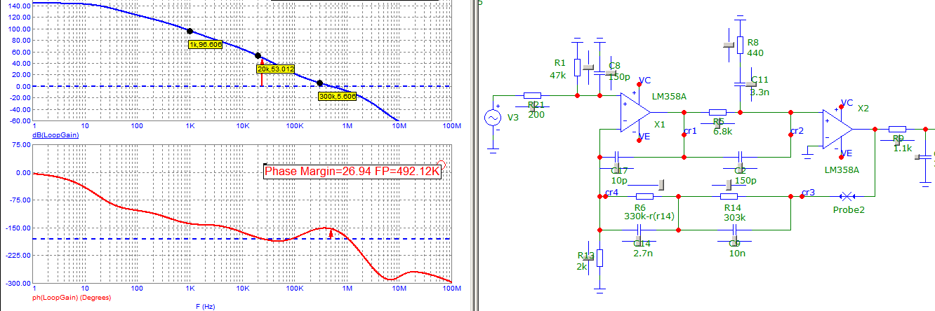 Думаю, что еще уменьшить усиление на 5-10 дБ и эта схема засвистит, хотя по началу эту коррекцию поставил в параллель к 30 к в ООС ( под конденсатором, про который забыл) и все тоже как бы работало, хотя по НЧ была срезанной макушка в графике АЧХ._poka