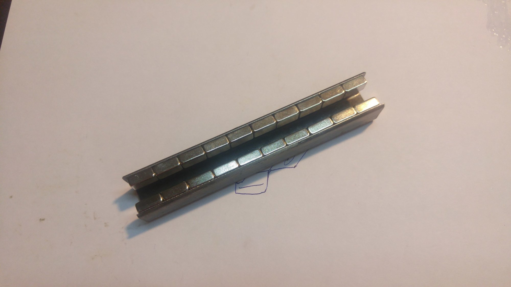 Лента будет пока 75-80мм, под нёё железо уже напилено, послушаю, подумаю, а если делать 14-15мм шириной и 50мм высоту, то нужно 4 слоя магнитов, чтоб индукцию сделать больше 0.4т.
