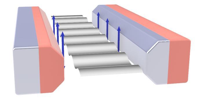 Зазор конечно будет меньше 0.5мм, пока не знаю, приклеивать медную полоску фольги 0.1мм на полюса или нет, сами магниты по бокам (где стенка Блоха) проволокой обмотаю, на подобии кз витка.