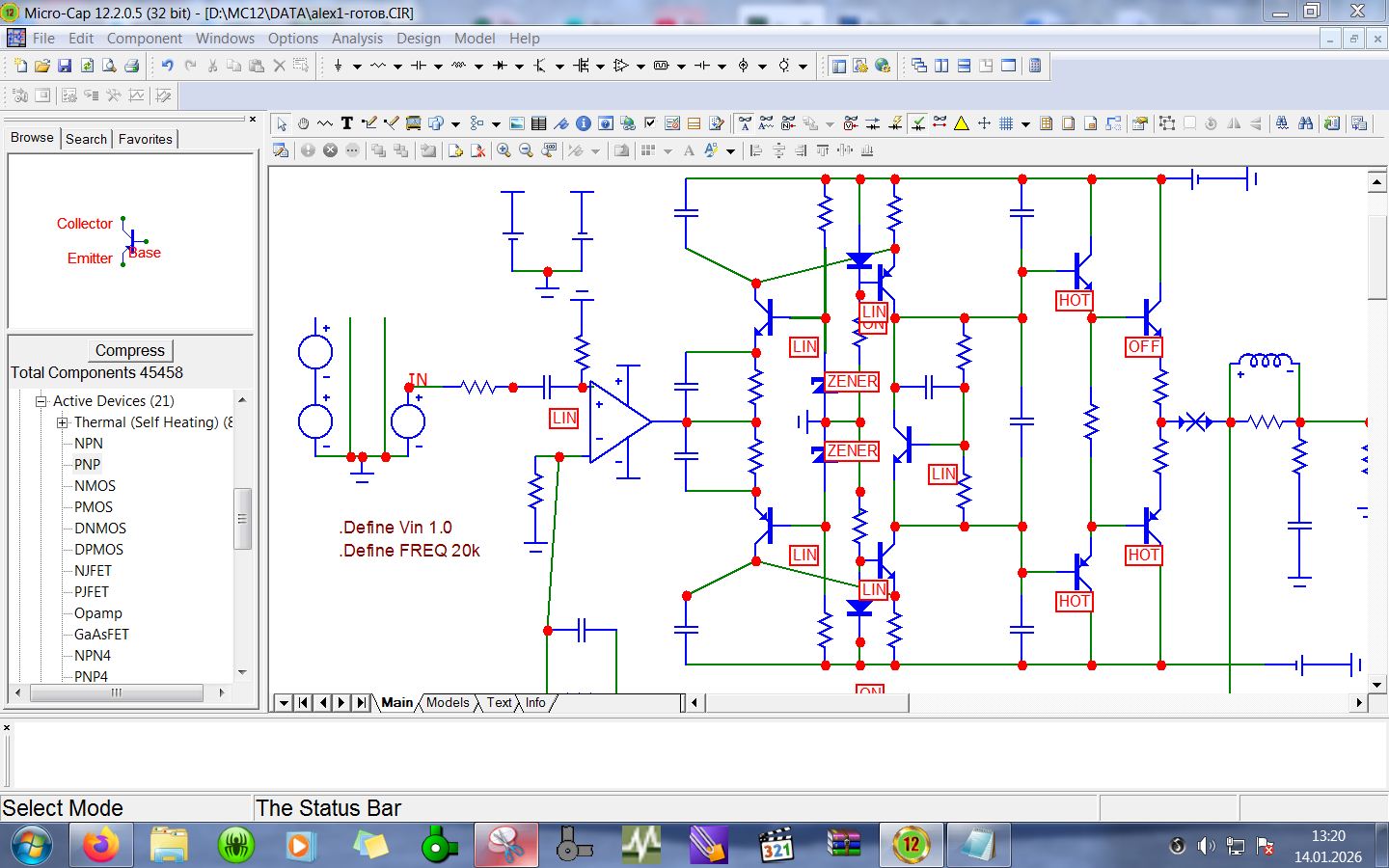 Я сижу везде, где мне удобно и нужно сидеть. Поэтому я и в Мicrocap сижу, и в LTSpice. Это как ездить по необходимости то на автобусе, то на трамвае и не заморачиваться.Хуан, опять двойственность, сидите в МС, по той же причине, он интересней, хотя производителям на х..й не нужен. А почему? Из пещеры вылезли, шкуру на костюм сменили.
