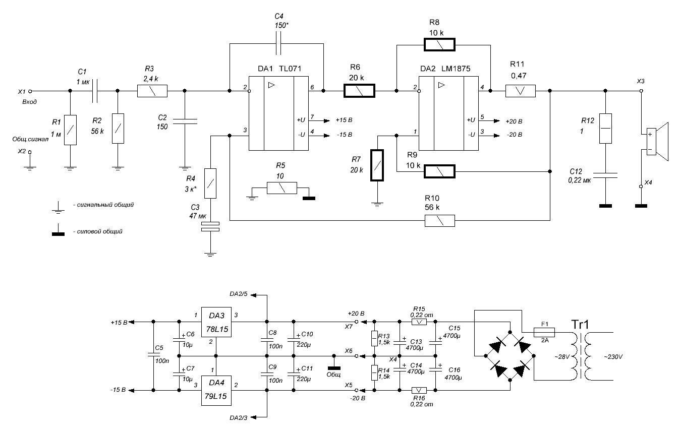 А это схема самого усилителя, один канал: