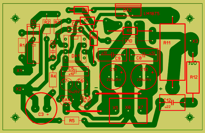 Печатная плата у меня достаточно тщательно сделана, соблюдена разводка общего провода и так далее. Если собирать на соплях и макетках, не знаю что получится и не хочу знать - мне это неинтересно. Опять-таки я писал, что это не первый, не второй и даже не третий собранный усилитель, причем разница между сборками - годы, а все работали сразу. Чтобы желающие могли повторить результат, я выложил рисунок печатной платы. И писал, что увы, при использовании очень сомнительных LM1875 результат непредсказуем (это очевидно), но за подлинность моих микросхем я не ручаюсь, а результат хороший.