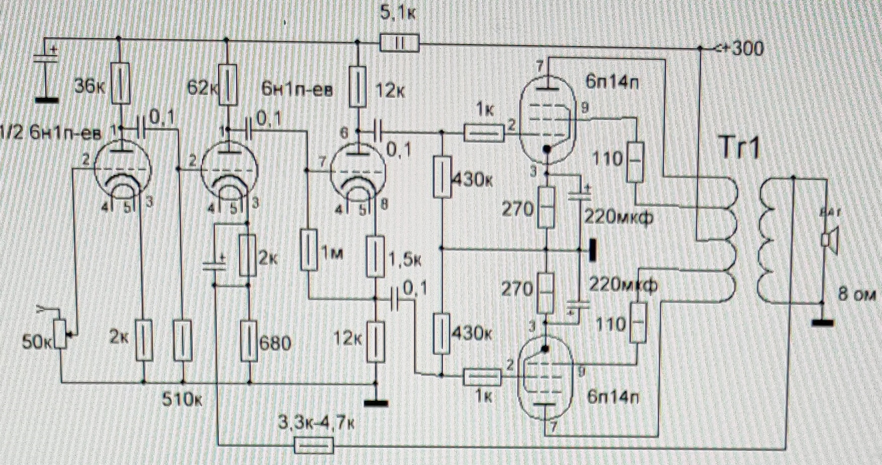 Вы железно правы в главном, но есть капканы и вилы, на которые я наткнулся. Глубокая ООС мощника ведет к выраженной неустойчивости этого устройства. И там очень многое зависит от качества намотки выходного транса. Зыкову хорошо, он радиоинженер высокого уровня, ему намотать качественный выходник как два байта отослать. А у вас ситуация с большой буквы Ж. И крутиться вам в пределах ворот рамок дареного коня.А что скажете если взять выходную часть усилителя Зыкова, тут вроде лишнего усиления не будет учитывая усиление 6н1п и чувствительность будет приемлемая? По схеме получается так: