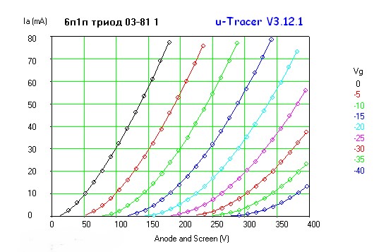 ВАХ реальной лампы 6П1ПКстати, поделитесь пожалуйста, если есть лучшие вах триодные 6п1п. Я нашел только такие.