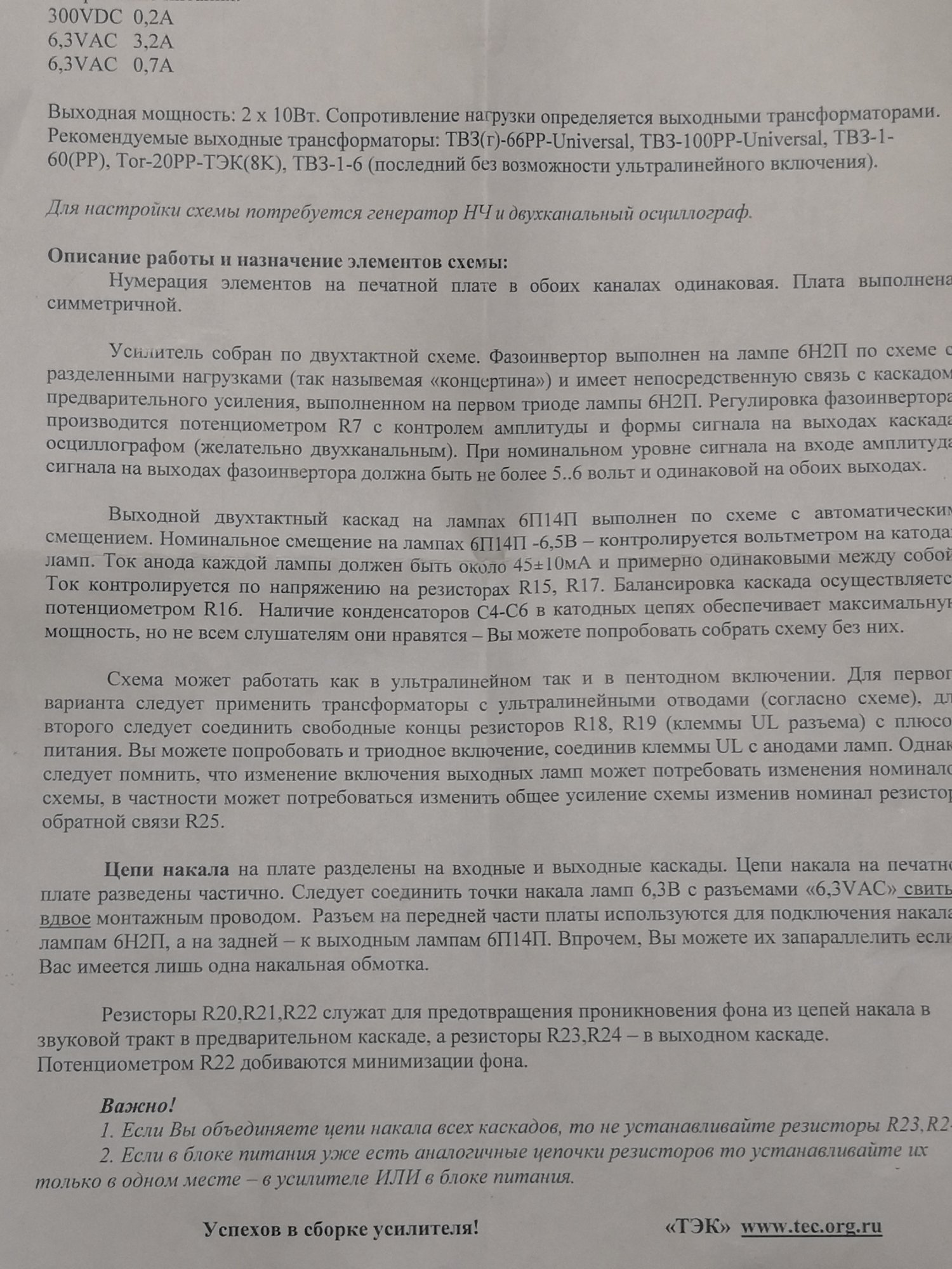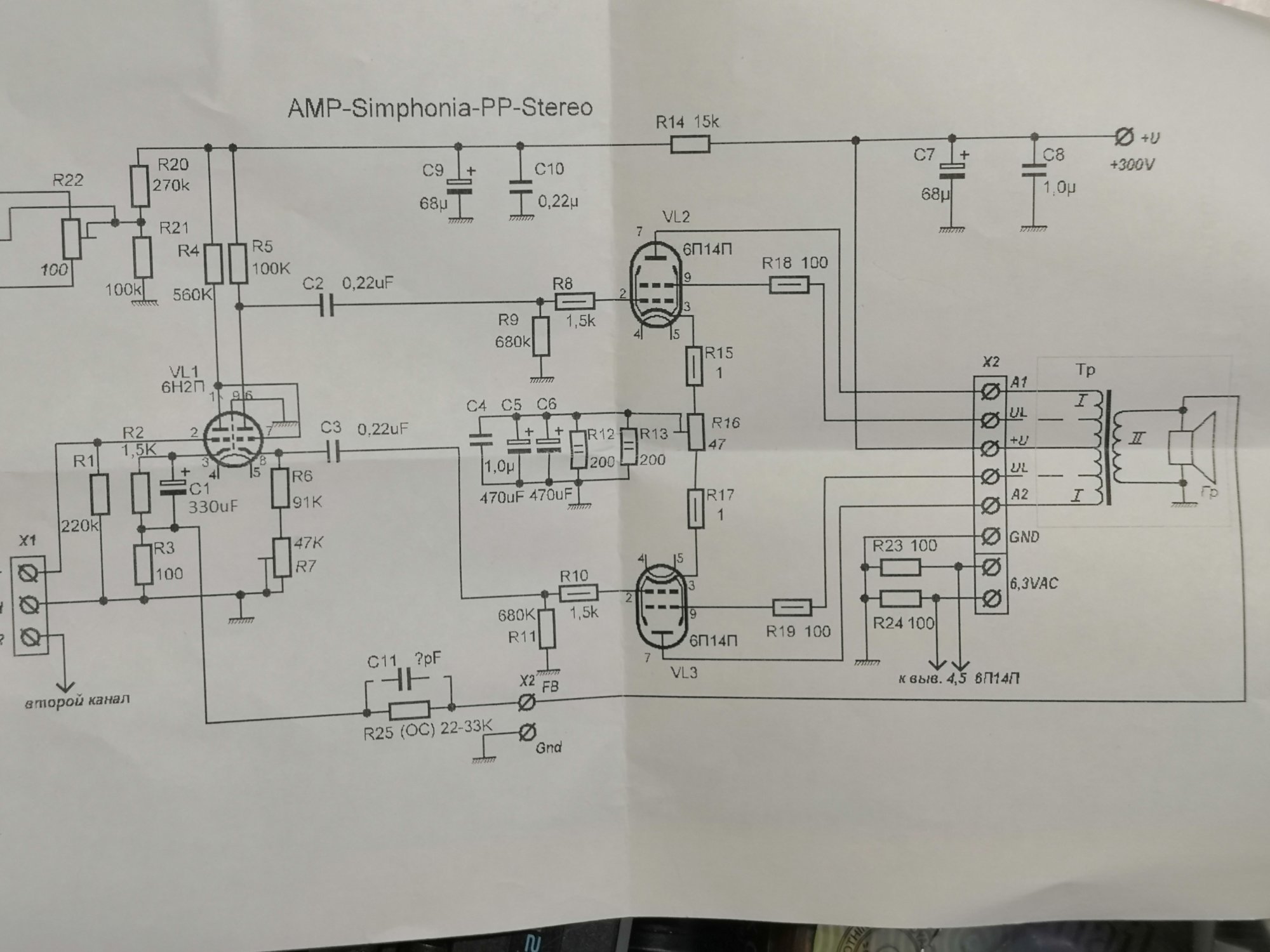 Можете попробовать уменьшить ОООС.Приветствую коллеги и соратники. Сразу к теме, попались выходники ТВТ-24. Приобрел к ним печатную плату, собрал макет... Работает, но СЕ от ригонды нахлабучивает, этот по полной. Низы глубже, насыщеннее, объёмнее. Диван дрожит и стена капитальная. Звук от РР напоминает транзисторный, плоский и не выразительный. Подключил в триодном режиме. Выбросил конденсаторы катодные, стало лучше, но не то. В чём проблема? Заменить решил по причине недостатка высоких, получил ровную середину(. Лампы ставил 6П14П-К , затем заменил на 6П18П, лучше, но не очень(