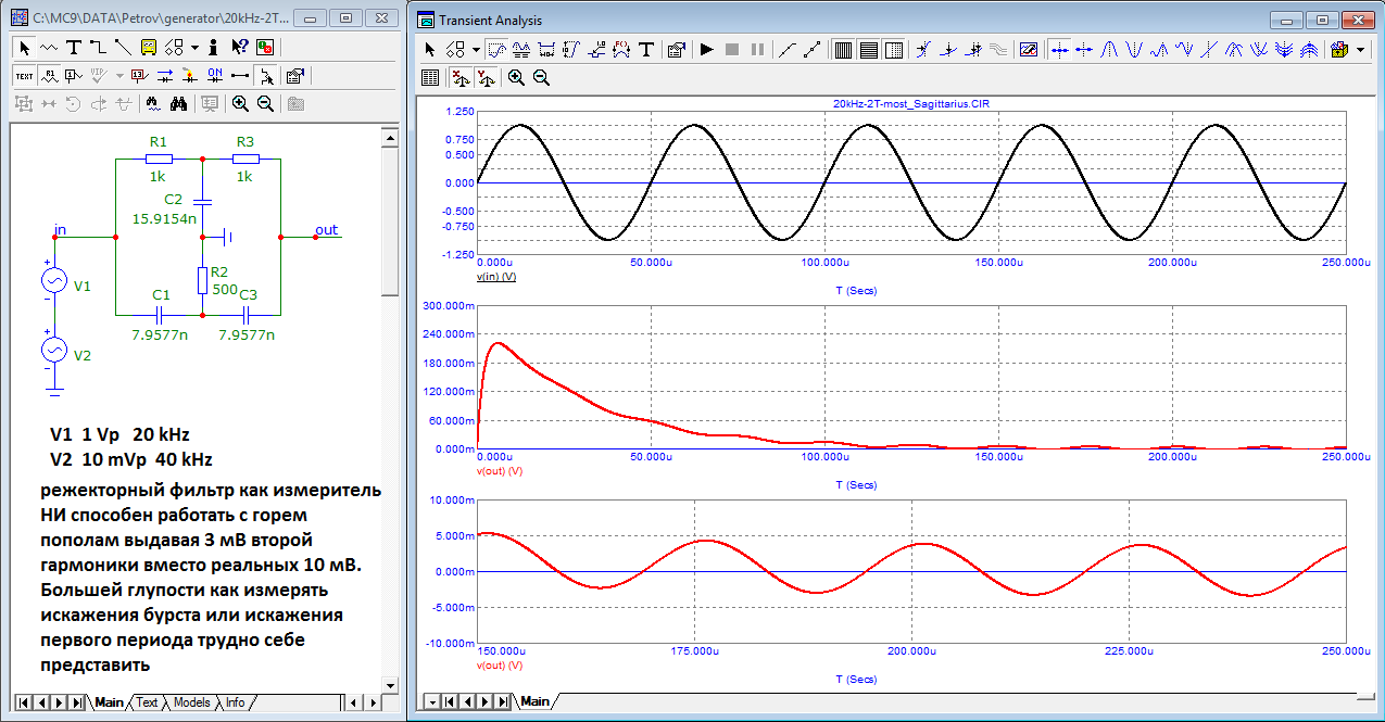 Переходные процессы самого фильтра пытался выдать за искажения сигнала