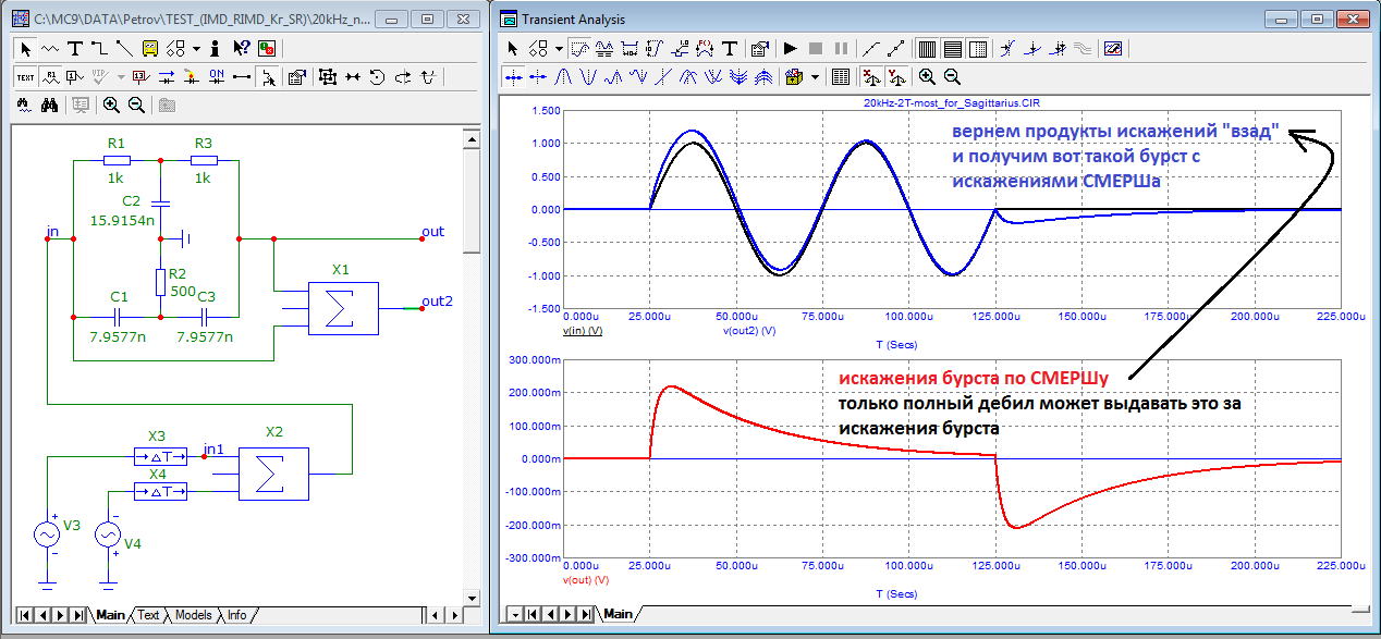 А что касается СМЕРШа... Так он вам показывал токи каскадов Мастера при подаче на вход прямоугольника. А вы обратили на это внимание? Вам же было важнее поспорить, игнорируя доводы оппозиции. И петлевое вам показывал, и спектры...