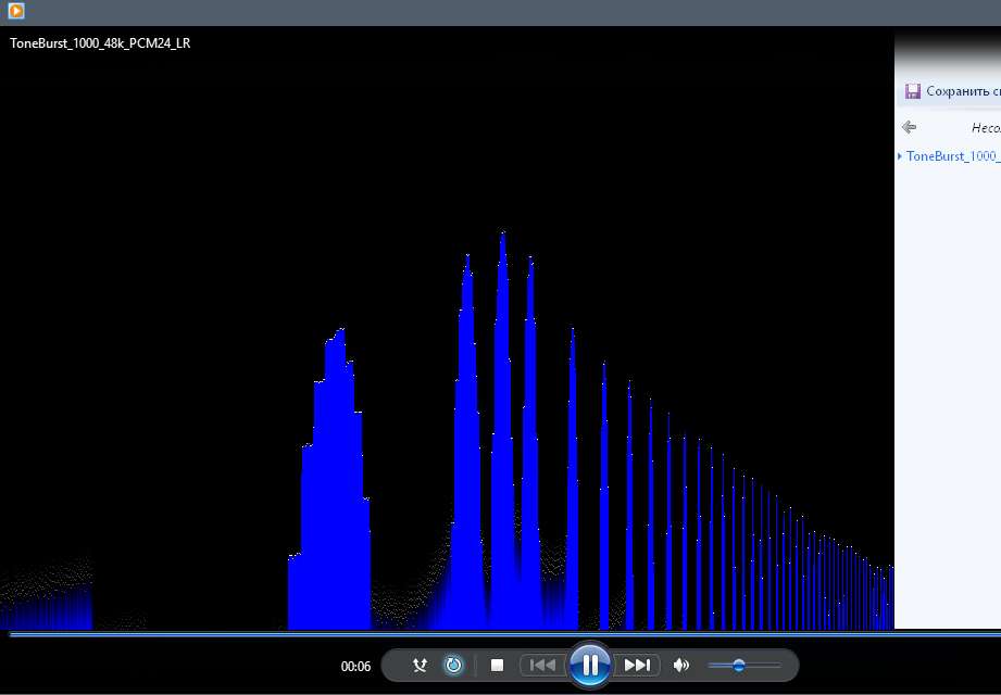 Самое прикольное, что даже Windows Media Player показывает вам спектр бурста, если включена визуализация спектра. Там он всплесками, но словил как словил, смысл понятен.