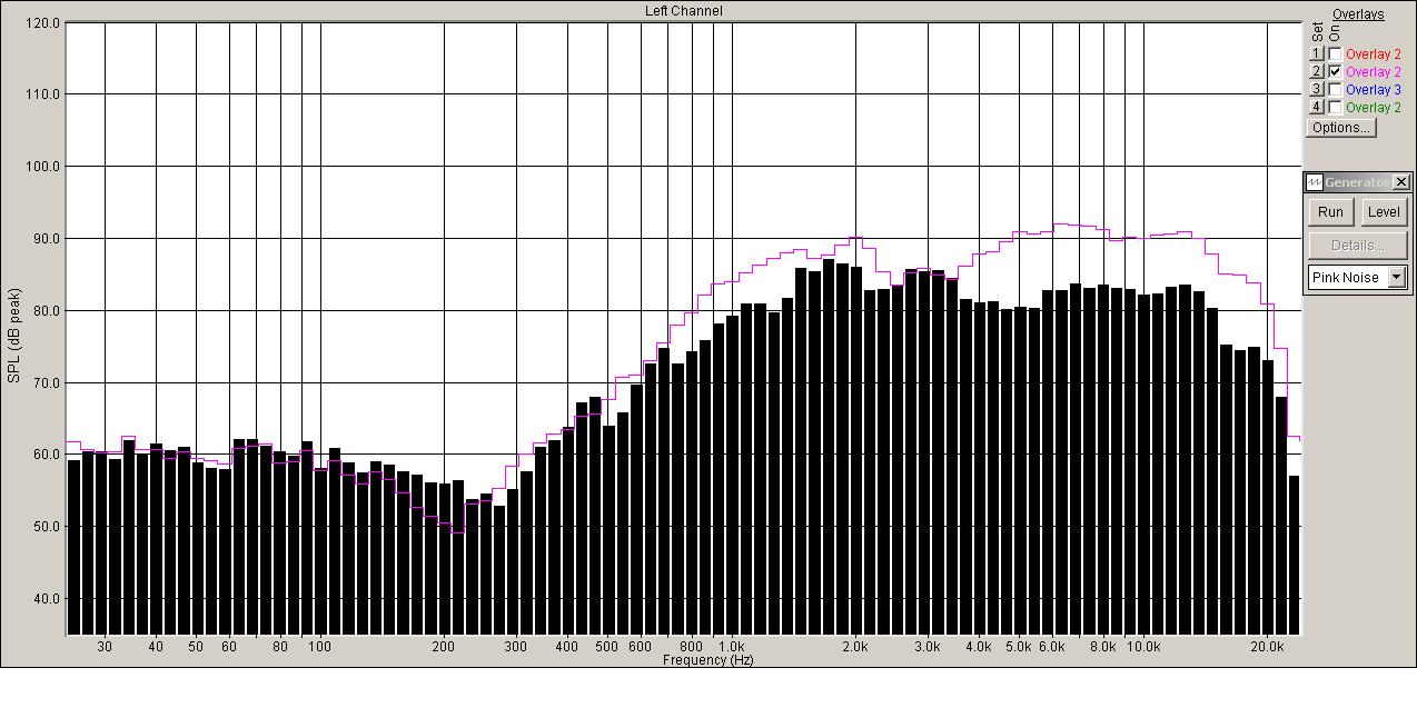 Сонавокс против GTO18T, JBL. Двухомность последнего учтена уменьшением уровня тестового шума на 6дБ. Джэйбиэль кричит как резаный!