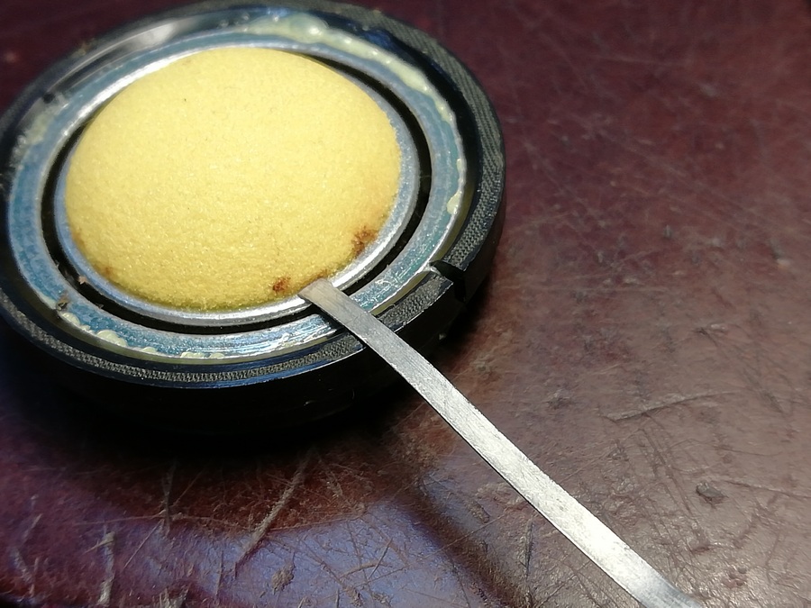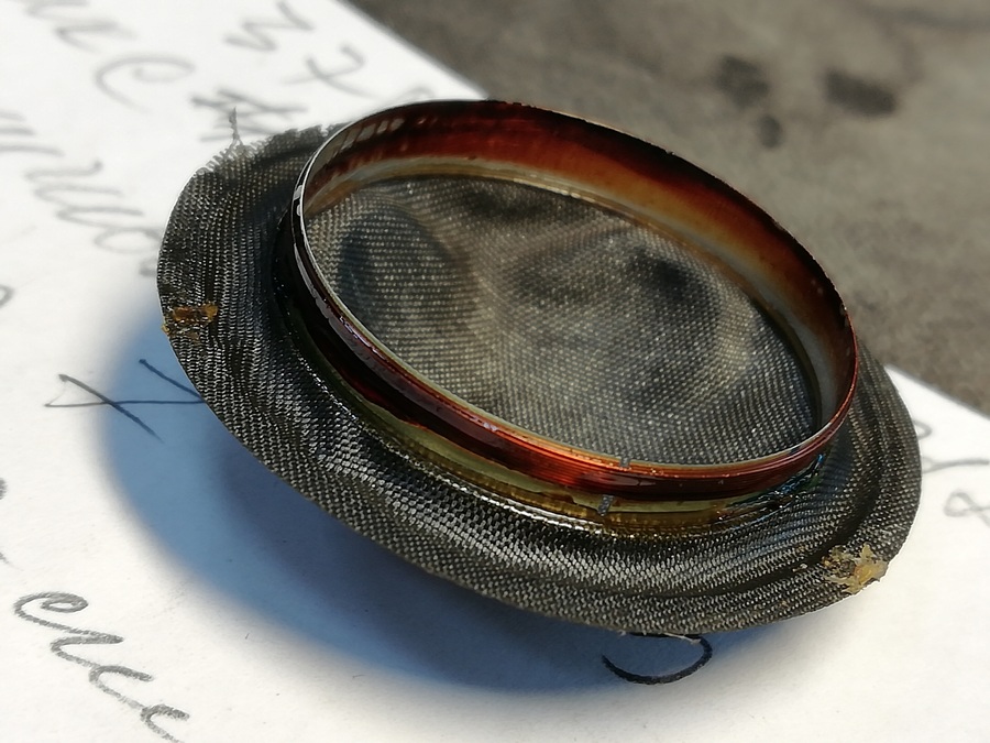 Без тесламетра тут и сказать нечего. Махнул рукой и разобрал вторую. МС чистенькие. Видно, что заливал жидким БФ-2 для фиксации пошедших боков таблетки и её самой как относительно стакана так и наконечника образующего зазор со стаканом. Подвижки прибрал.