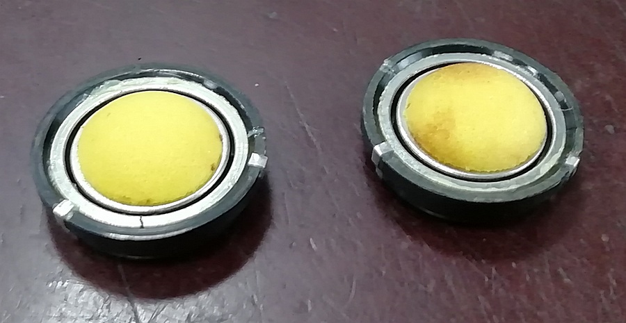 Зазоры обеих забиты "чешуёй" от неодимовых таблеток. Наконечник свободно перемещается от руки. Пока оставлю. Выкидывать не буду. Вдруг подходящие "стандартные" таблетки купить удастся. Попробую восстановить. Чем черт не шутит....