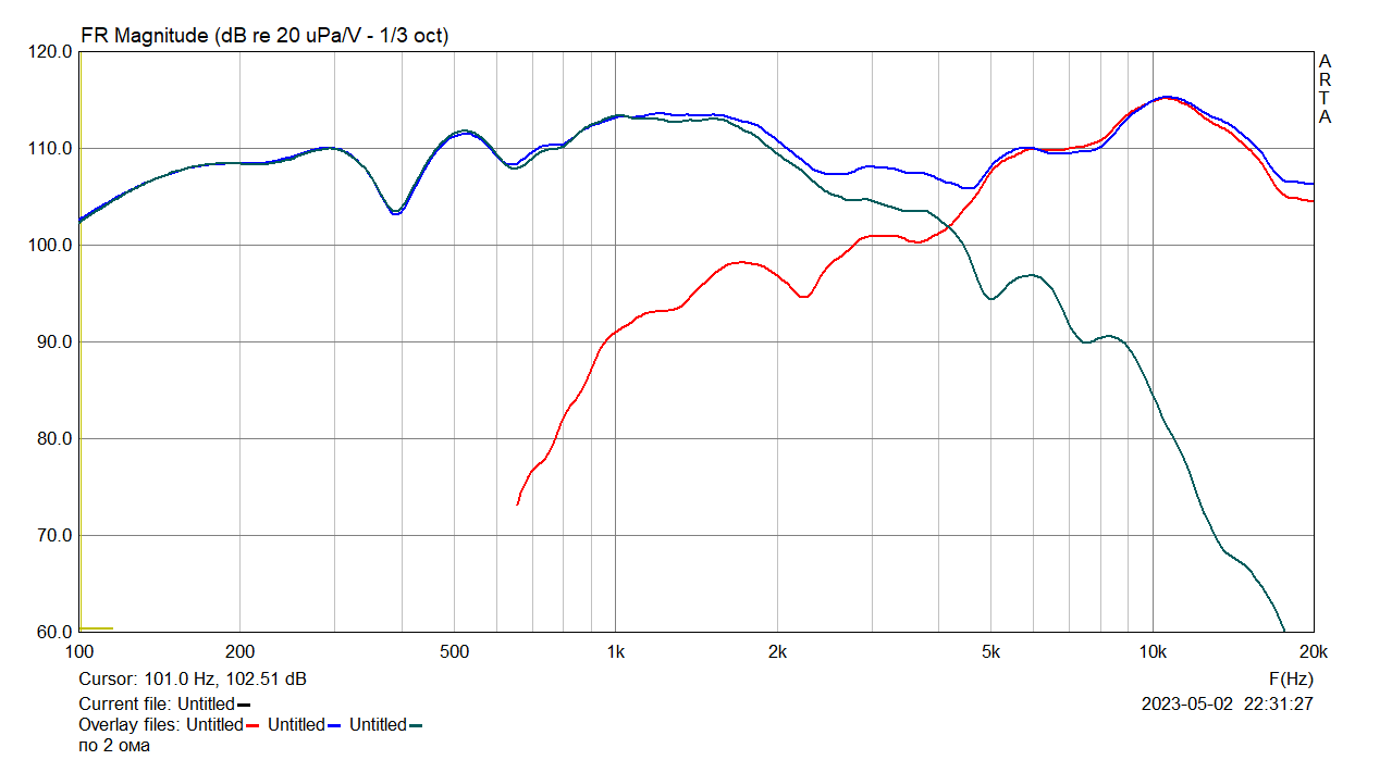 ВЧ динамик активное: 2,6 Ома (!), резонанс не обнаружен!