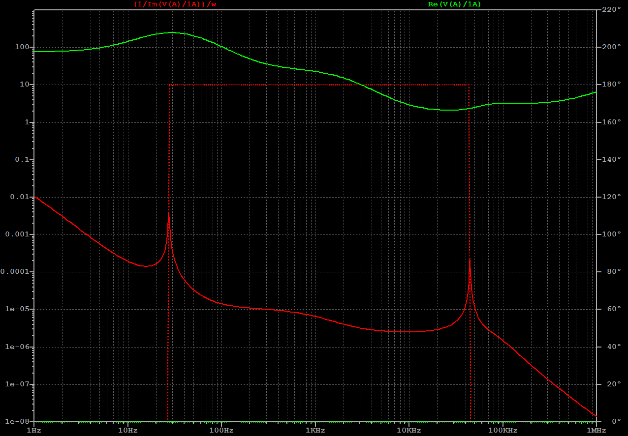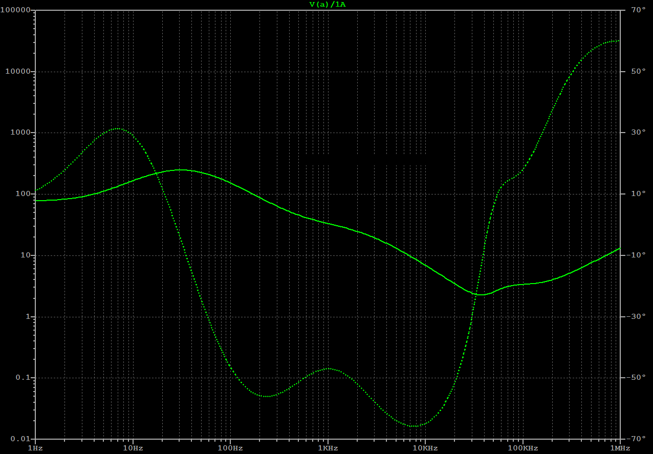 От ~30Hz до ~45kHz выходной импеданс имеет емкостной характер, вне этого диапазона - индуктивный.