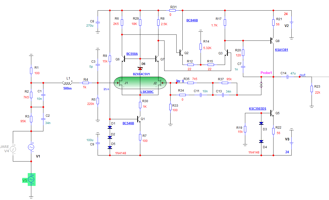 Попробовал, не получается (у меня), с резистора в базу - и начинал. Не смог подобрать соотношение токов, чтобы всё работало в пределах размаха выходного непряжения ОУ.Отличная идея, может позже попробую, вот если бы кто схемку нарисовал. а пока можно выход опера через 56 кОм прямо на базу Т1 подключить.