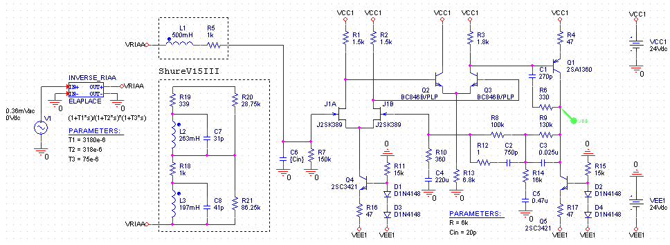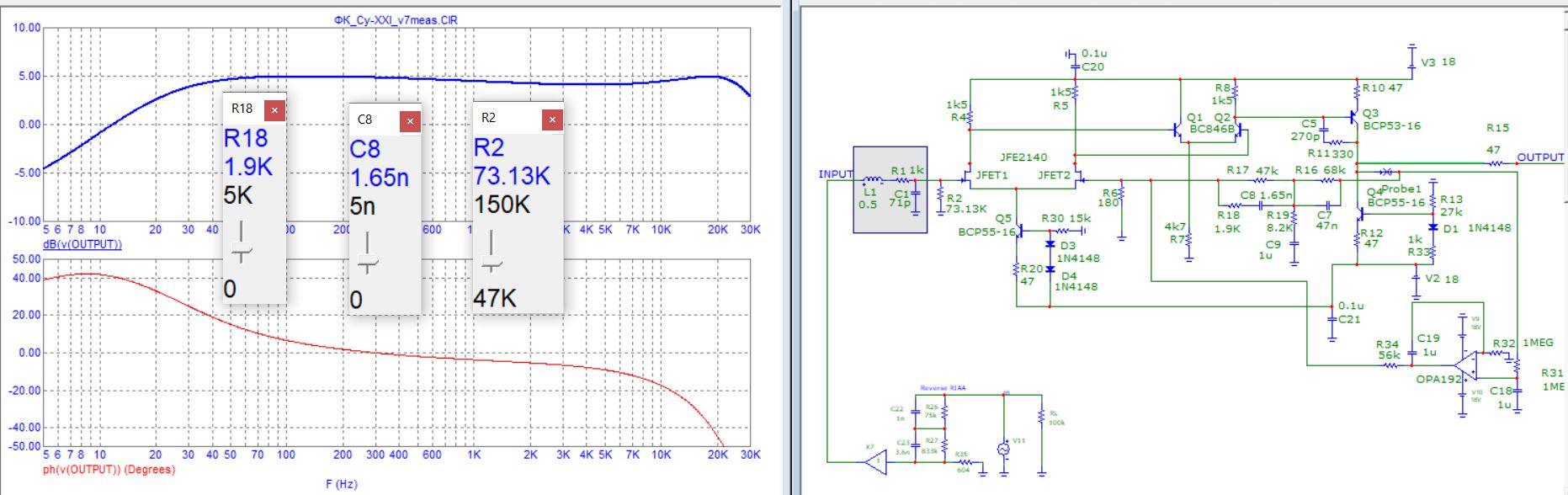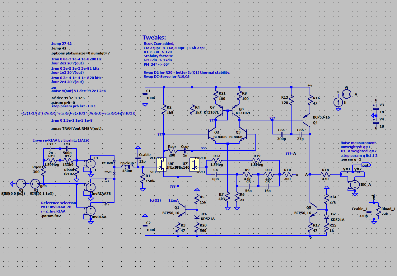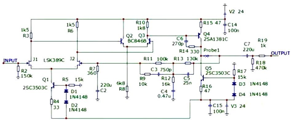 тут и без микрокапа ясно, что затрахаешься балансировать входную пару полевиков, да еще и нижний третий генератор тока, даже если перед этим отберёшь одну случайно совпавшую пару из туевой хучи в тыщу. Да и пленочный C3=6.8 мкФ - это капричосА я попробовал отмоделить эту схему в микрокапе и у меня она не балансируется, перекошена,