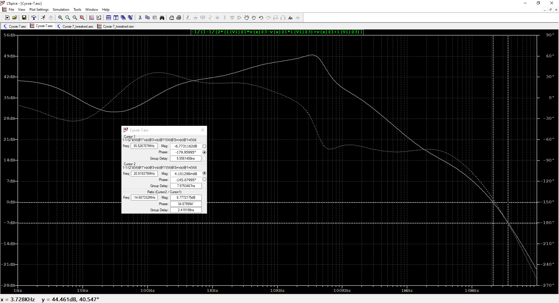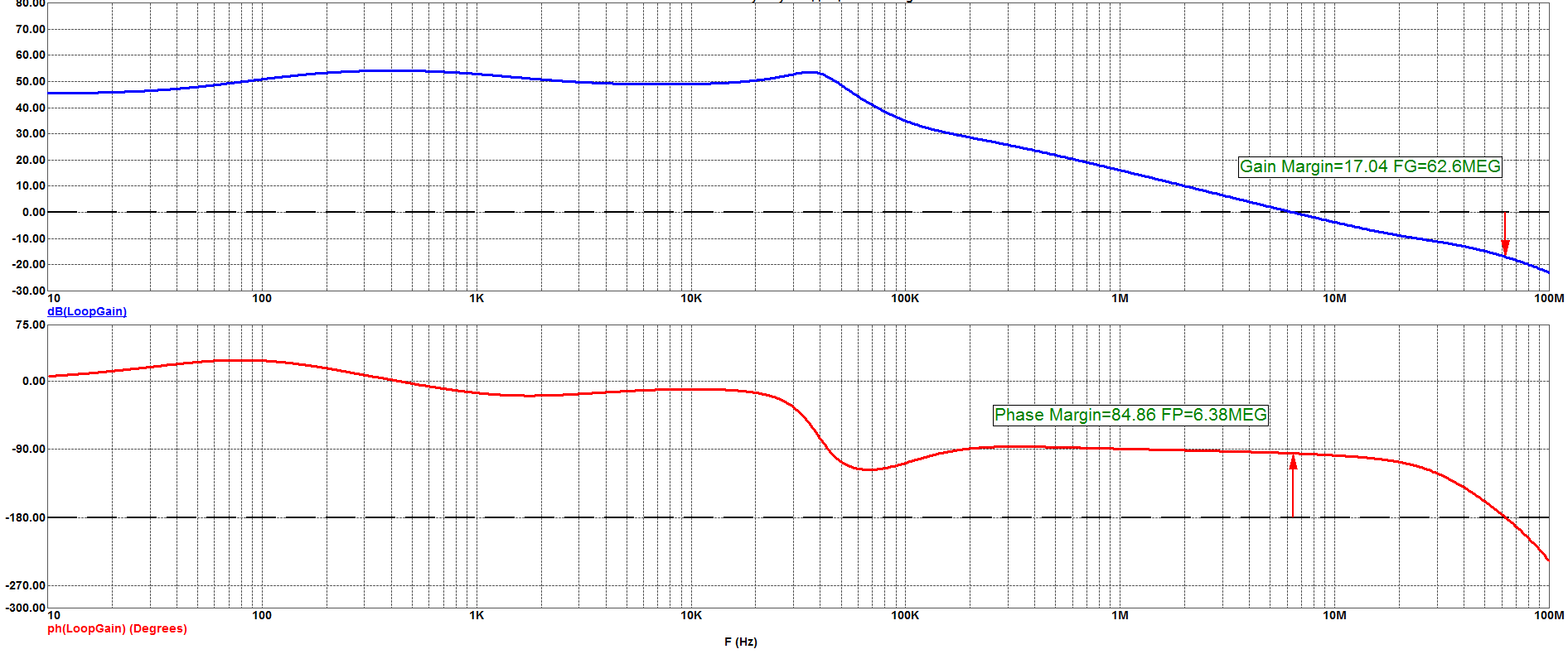 Петлевое усиление выросло на 20dB (эпюра красного цвета).