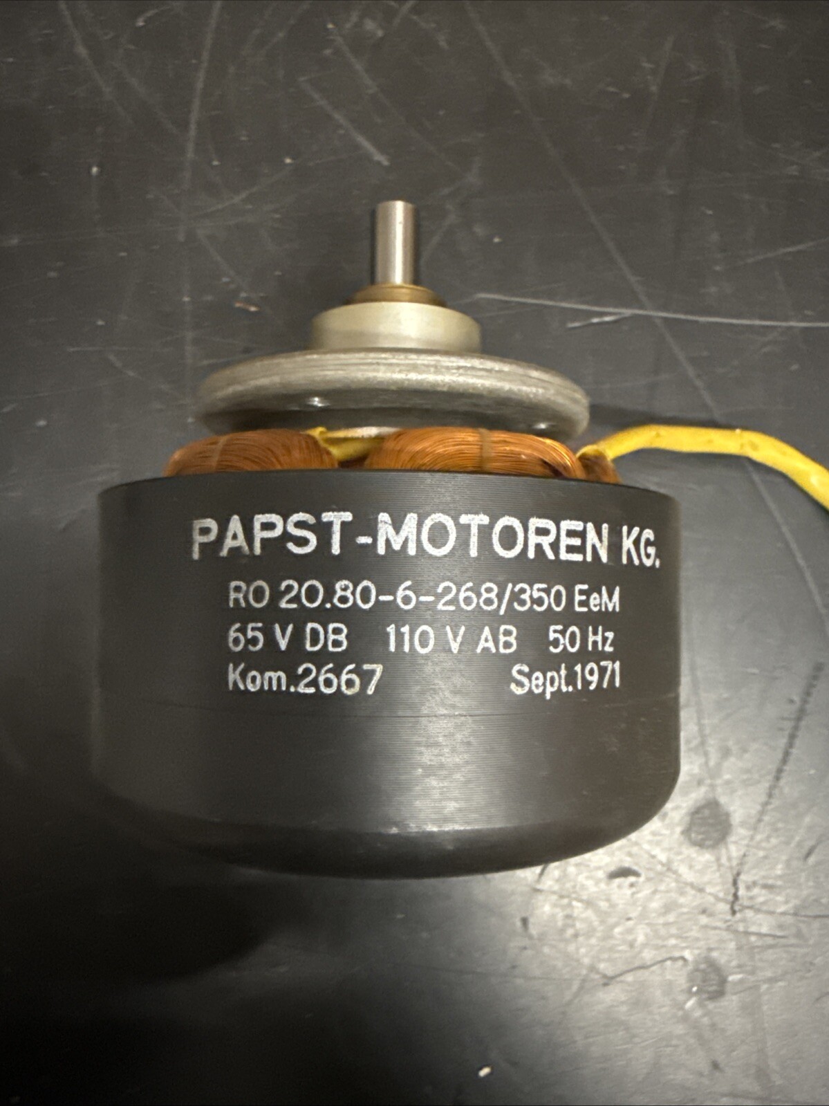 PAPST обанкротилась именно из-за большой себестоимости,т.к. требовала много часов ручного труда для точной балансировки .Нужно сказать ,что эти двигатели настолько качественно были отбалансированы,что держа в руке подключенный мотор зачастую не определишь крутится он или нет- очень очень тихие. Это мотор 77Ревокса.Ещё фото: