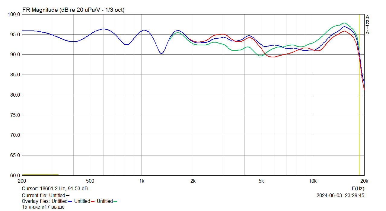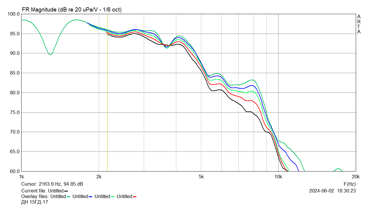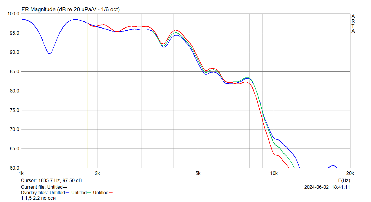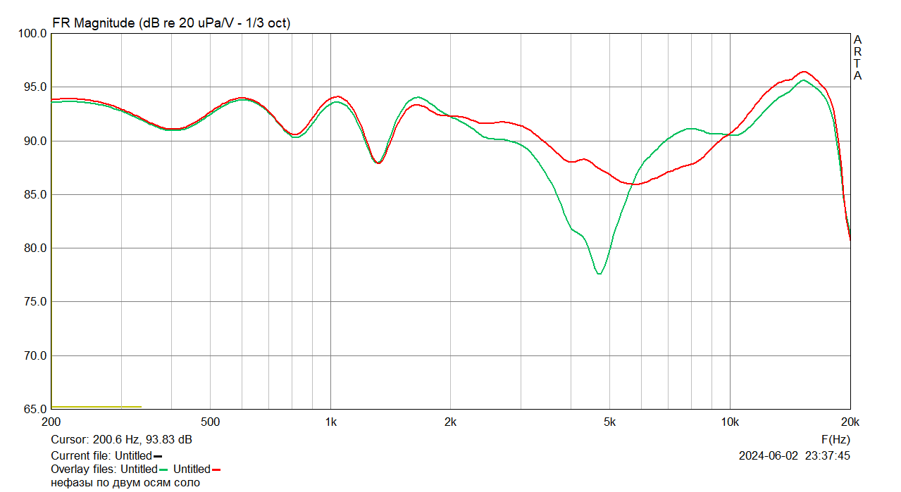 Видим, что во втором случае влияния оси нет выше 6,5 кГц, в то время как в первом есть заметное влияние выше 5,5 кГц.